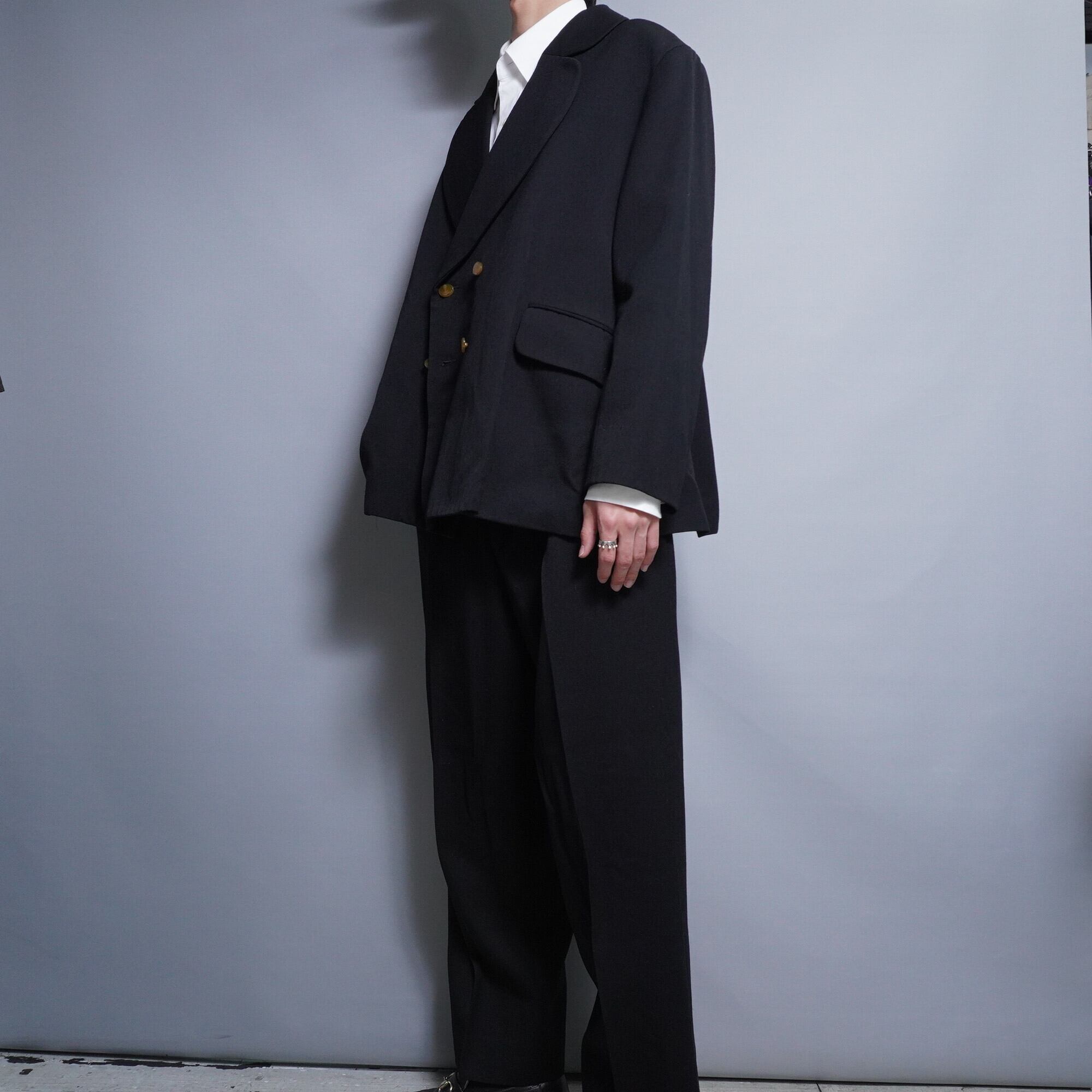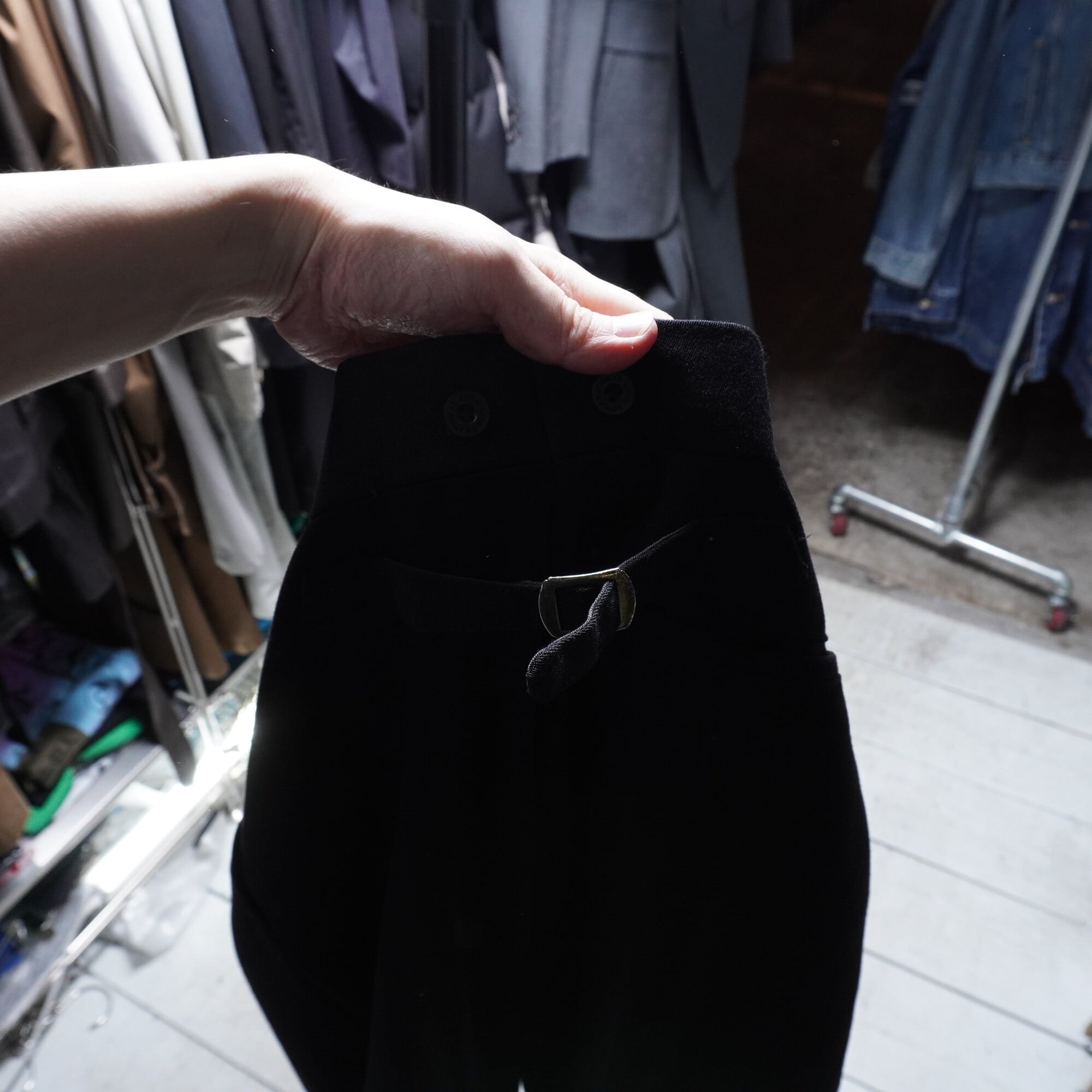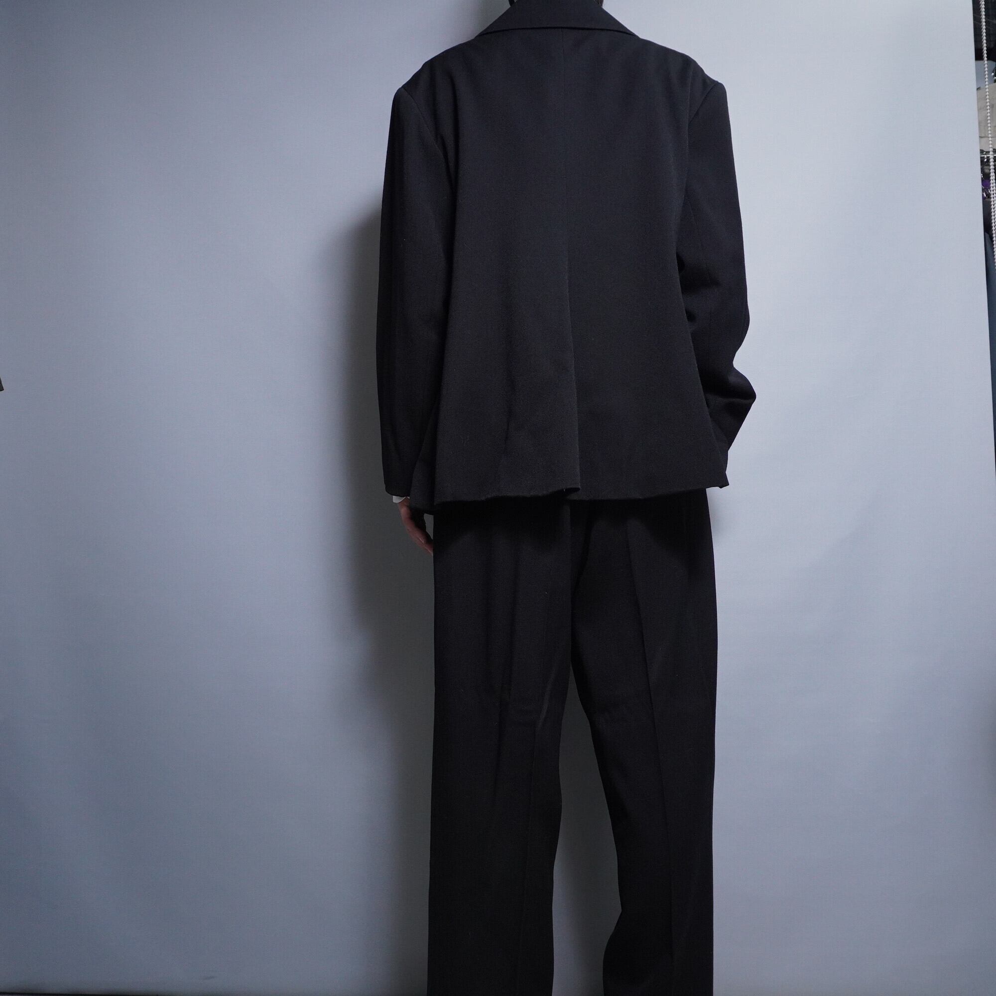 非常に珍しい形のウールセットアップになります。フェミニンな雰囲気のある襟元と、太めのシルエットが相まって独特なデザインとなっています。