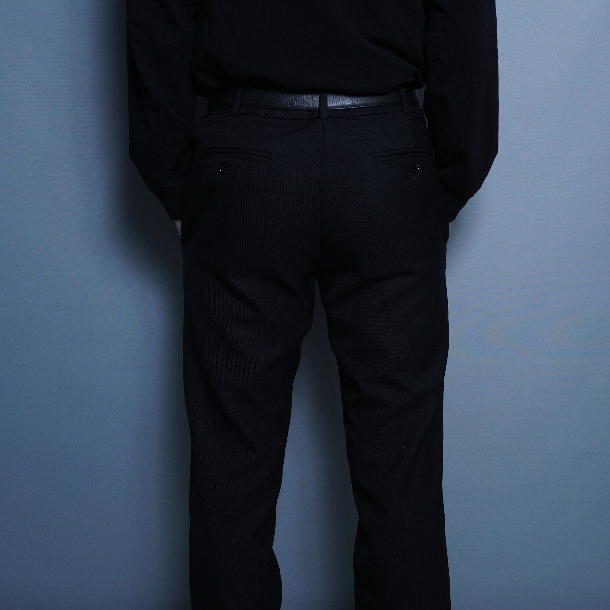 このスラックスはワイドストレートのシルエットで、脚の太さを引き締めつつもゆとりのある着け心地の良さが魅力です。ウエスト位置が高めに設定されていて、腰周りのすっきり感も演出してくれます。