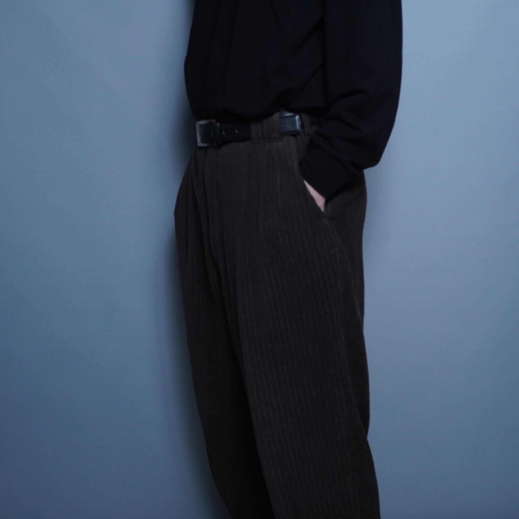 細畝と太畝が交互に配置されている比較的珍しいコーデュロイパンツ。程よくゆったりとしたテーパードシルエットで、裾のたまり具合などで着回しの幅が広がる一着。