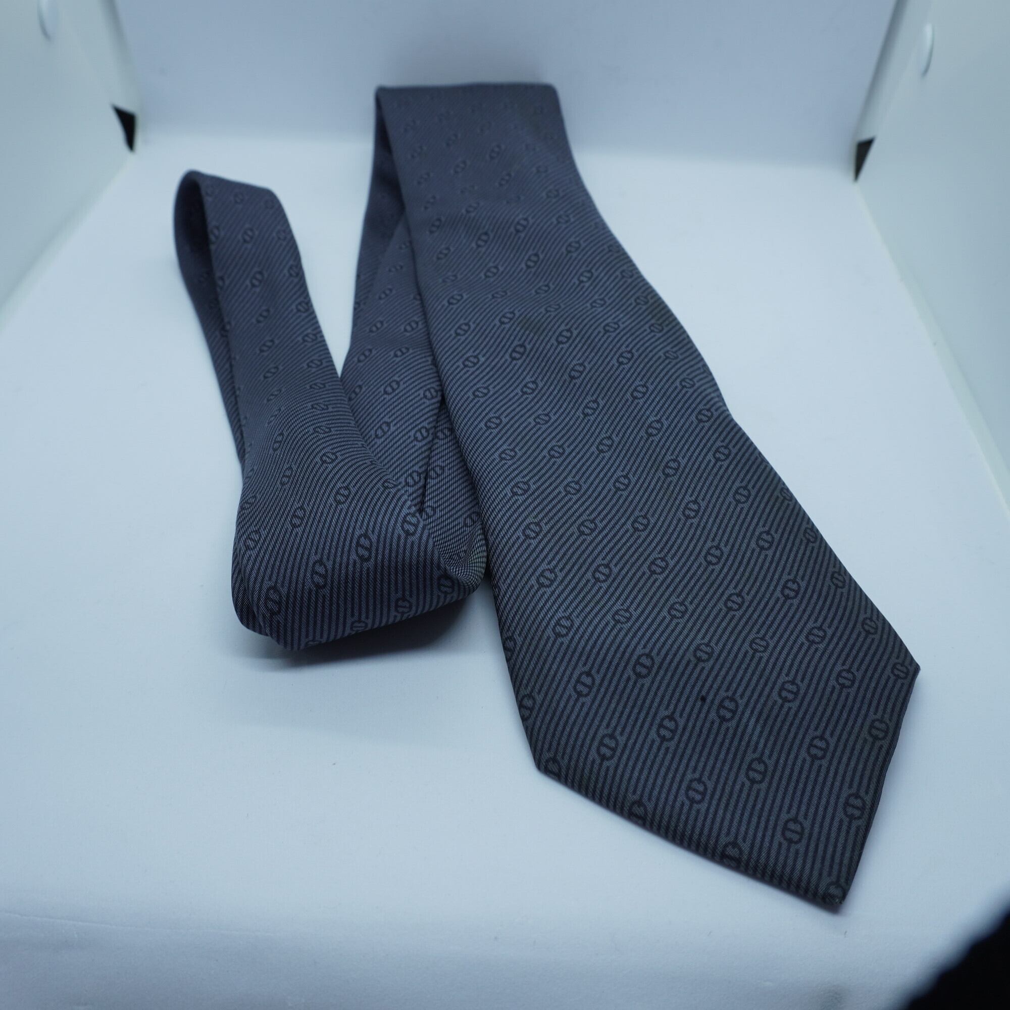 【HERMES】エルメス シェーヌダンクル柄ネクタイ チャコールグレー