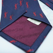 【YVES SAINT LAURENT 】YSL総柄ネクタイ ネイビー×レッド