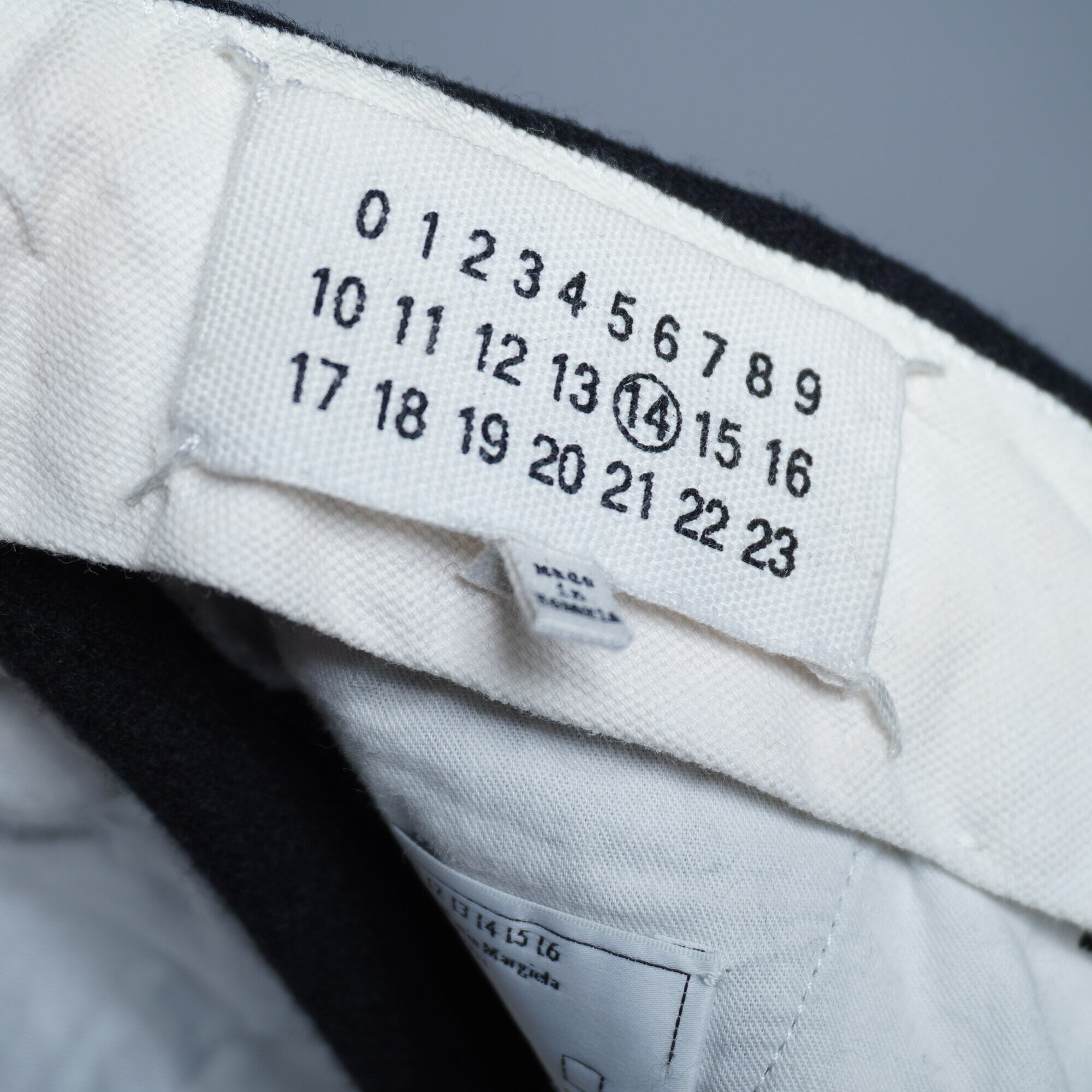 マルジェラらしい無骨でミニマルなデザイン、高級ウール生地の質感、デコンストラクテッドなディテールにこだわった、アヴァンギャルドなウールパンツと言えます。