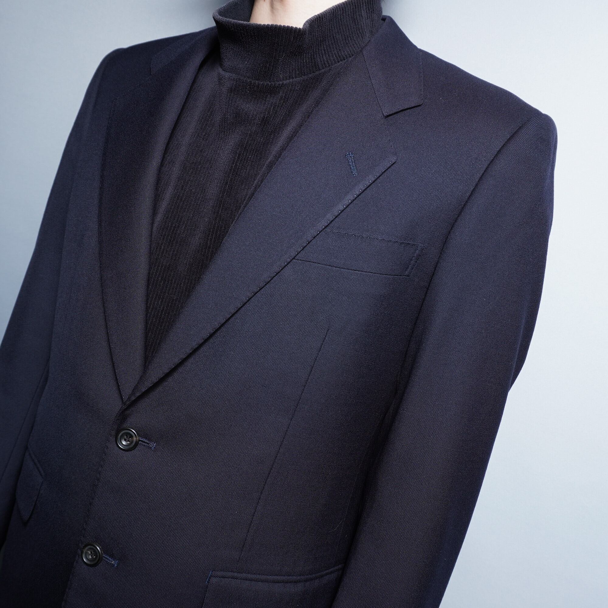重厚感のあるウールが使用されている2Bセットアップ。厚めのウールはストンと綺麗な落ち感になってくれるので、フルレングスで履くことで良いシルエットを生み出してくれます。