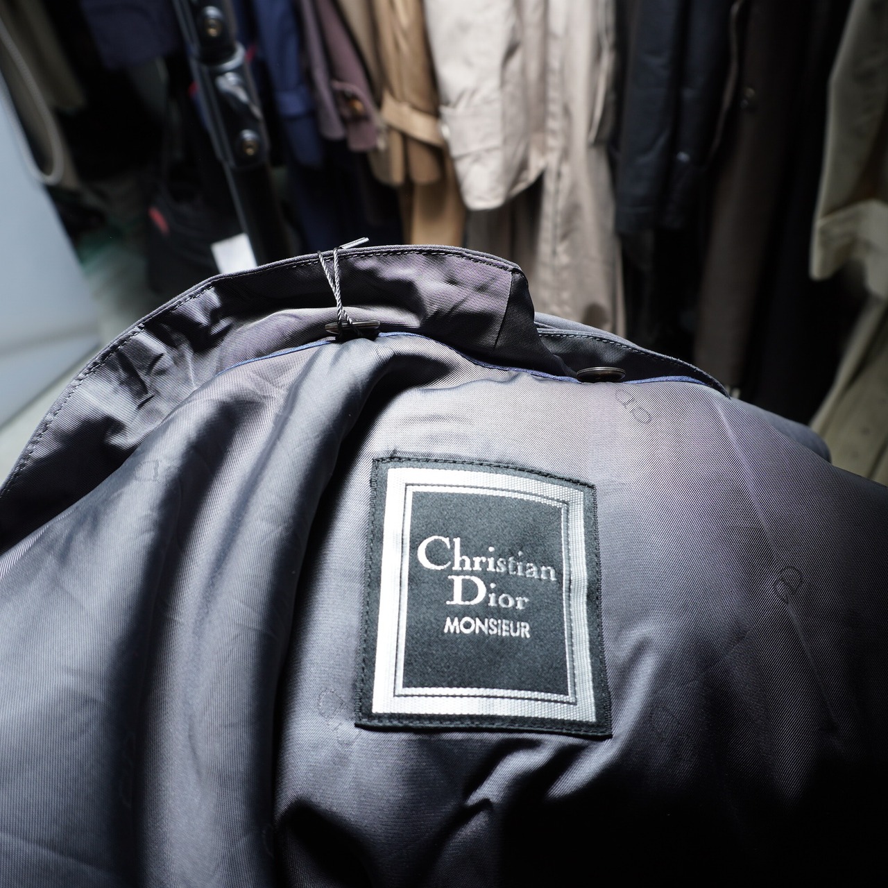 【Christian Dior】"微起毛" 完品 マイクロピーチ BLACK ステンカラーコート ライナー付き