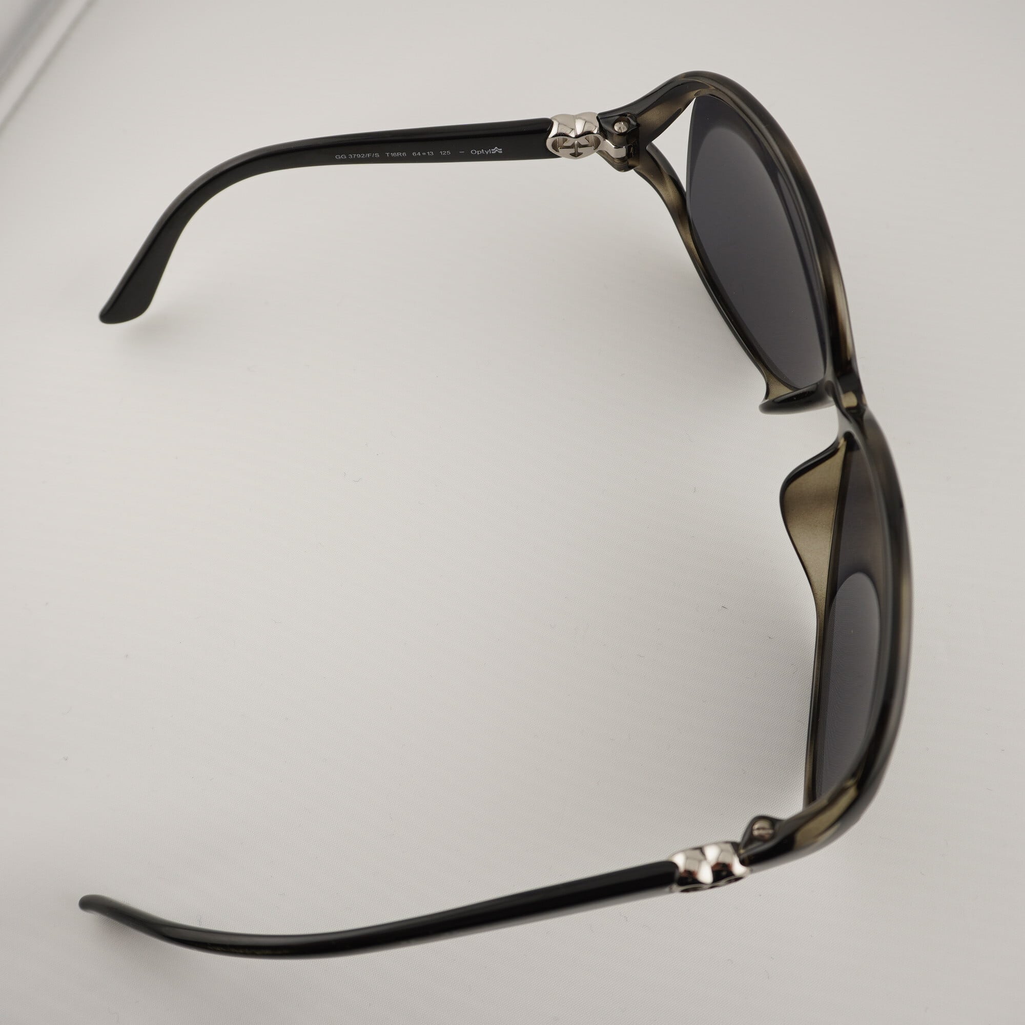 グッチのブラックサングラス。テンプル部分にはグッチの代表的なデザインでもある‘’GGロゴ’’が入っており、着用するだけで存在感を引き立たせてくれる一品です。