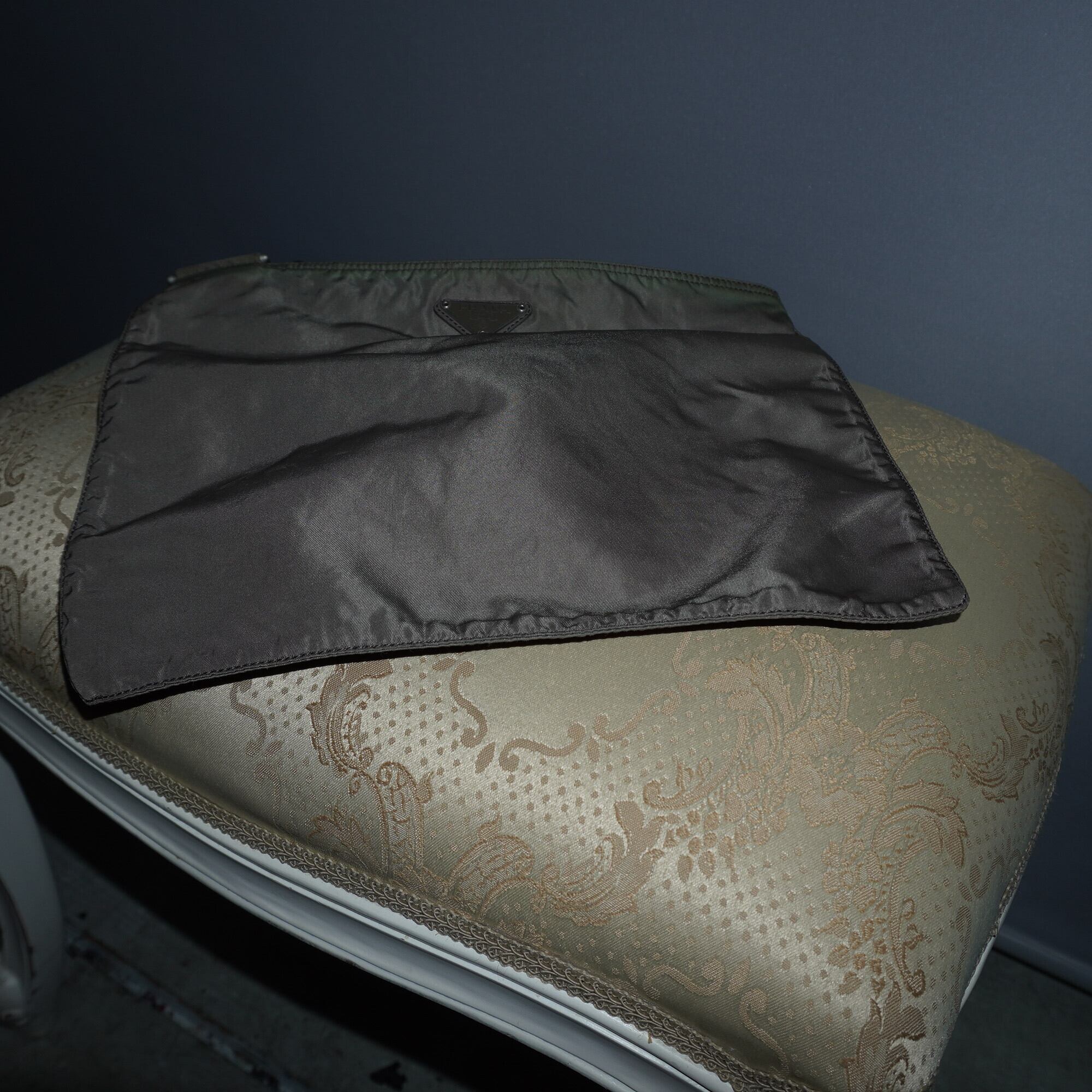プラダのオリーブのショルダーバッグ。ナイロン素材のバッグで高い防水性、耐久性を備えています。また、シンプルなデザインが洗練された印象を出している一品です。