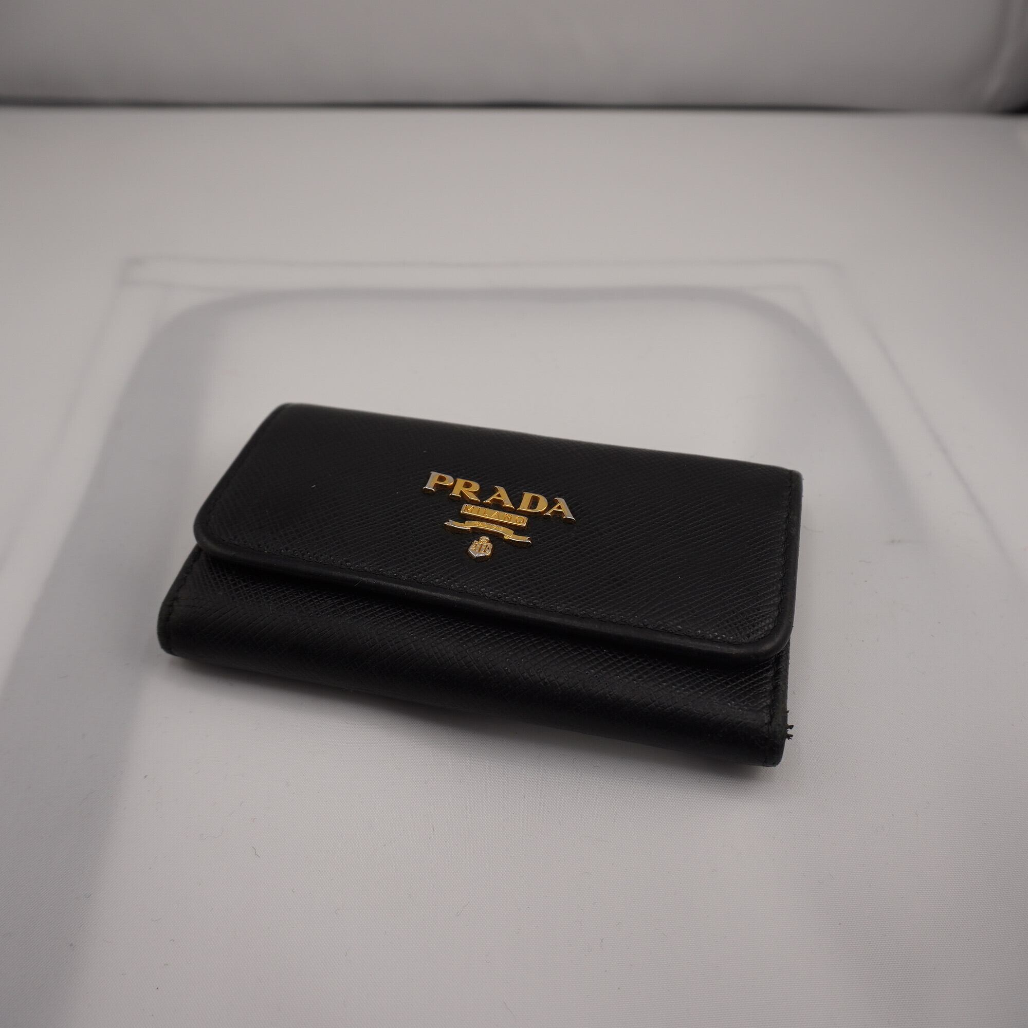 PRADAのロゴプレートが埋め込まれたキーケース。三角プレートではなく、こちらのロゴが好きな方も少なくないのではないでしょうか。