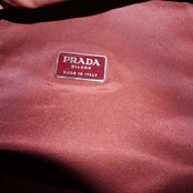 プラダのナイロン素材のリュック。高密度ナイロンなので、水の侵入を防いでくれることに加え、ナイロンとレッドブラウンのカラーがコーデに一癖つけてくれること間違いなしです。