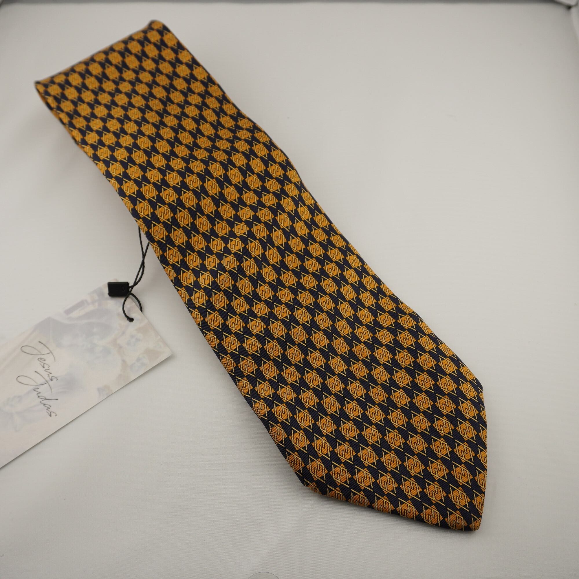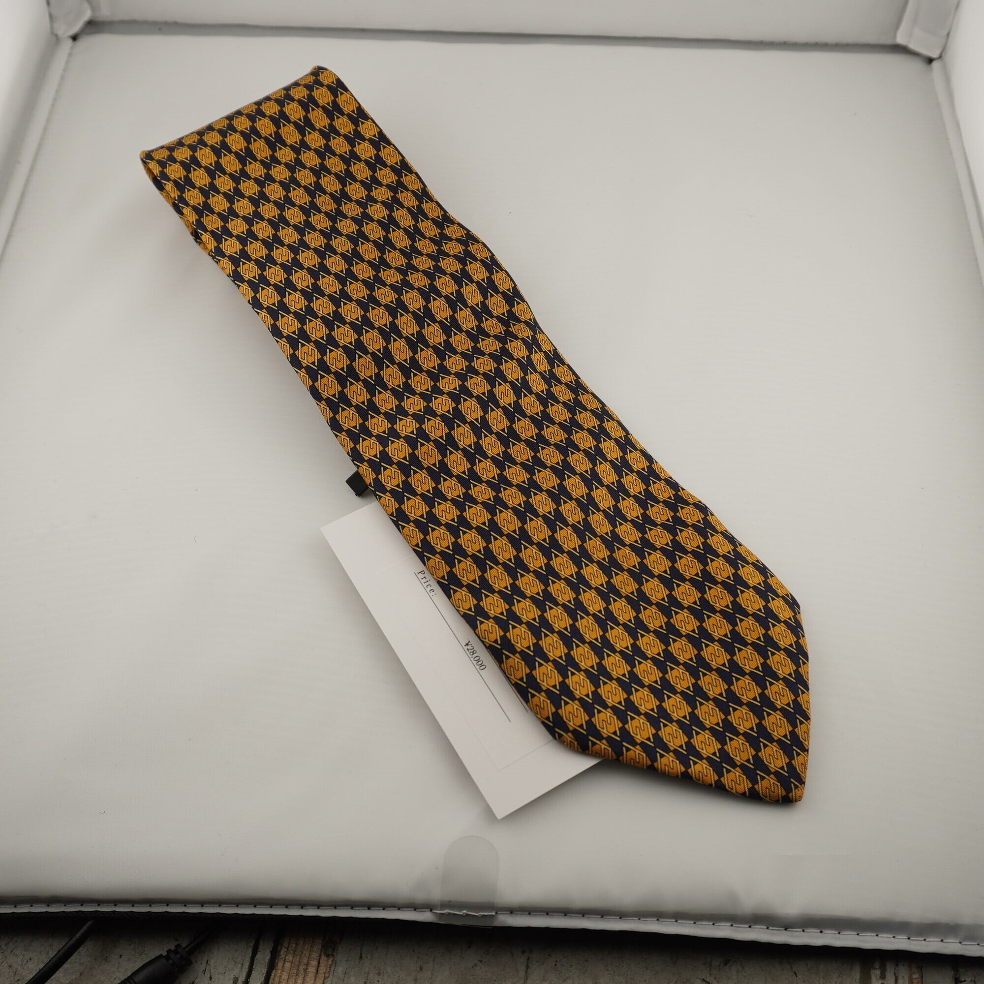 フェンディのFFロゴ入ネクタイ。ロゴが総柄となっていることで、カジュアルさとブランドアピールが共存したデザインが特徴的な一品です。