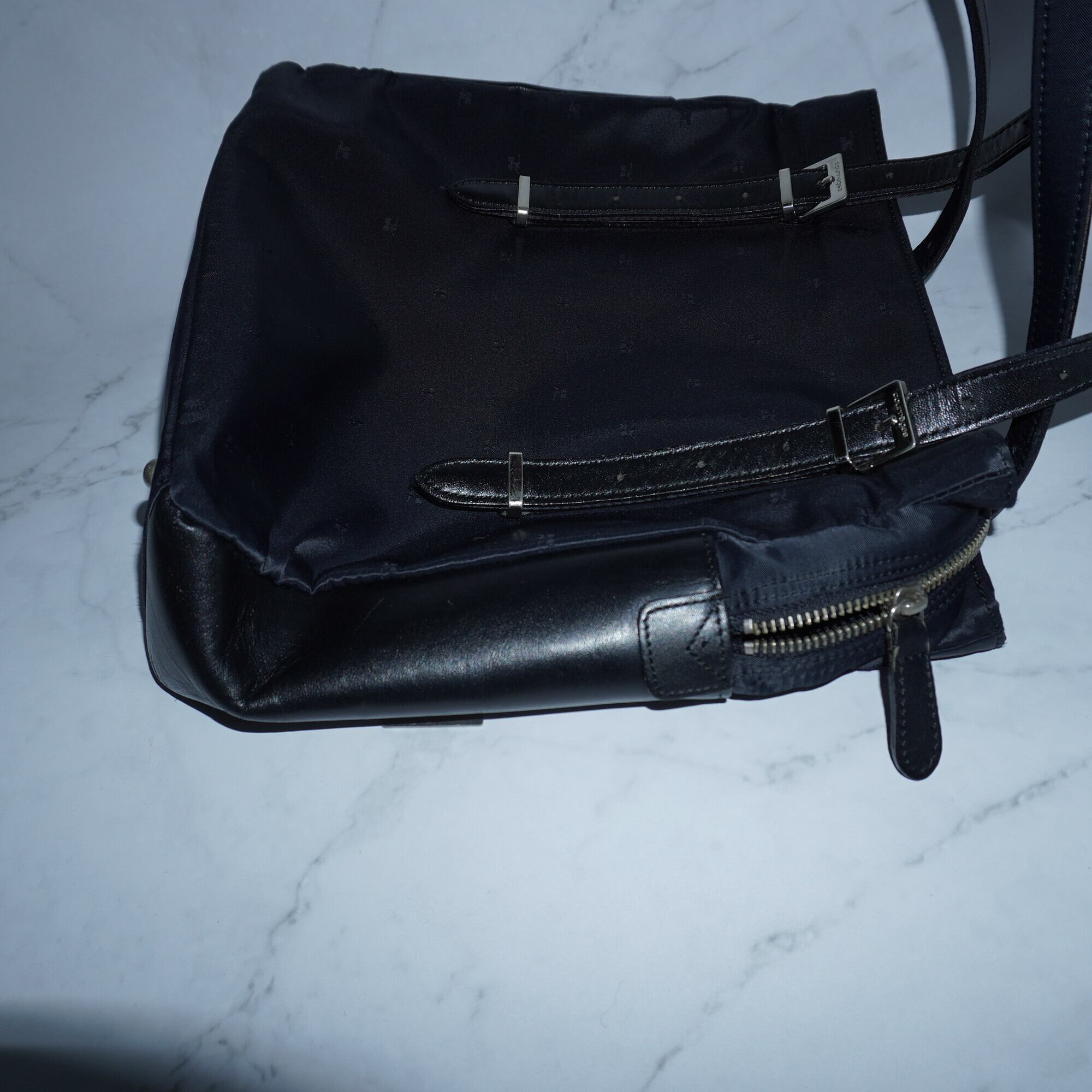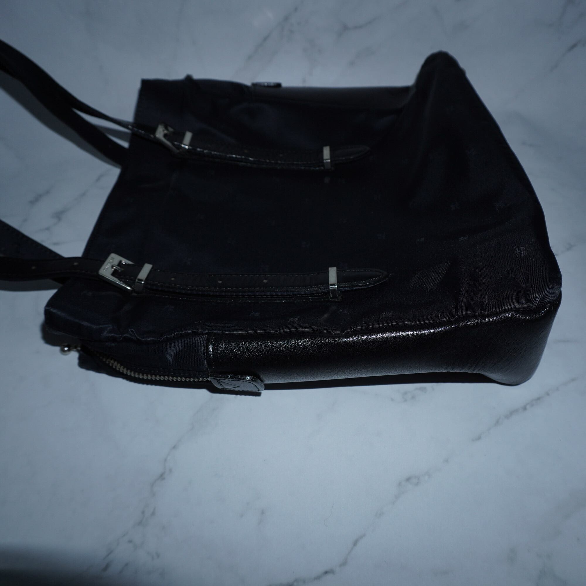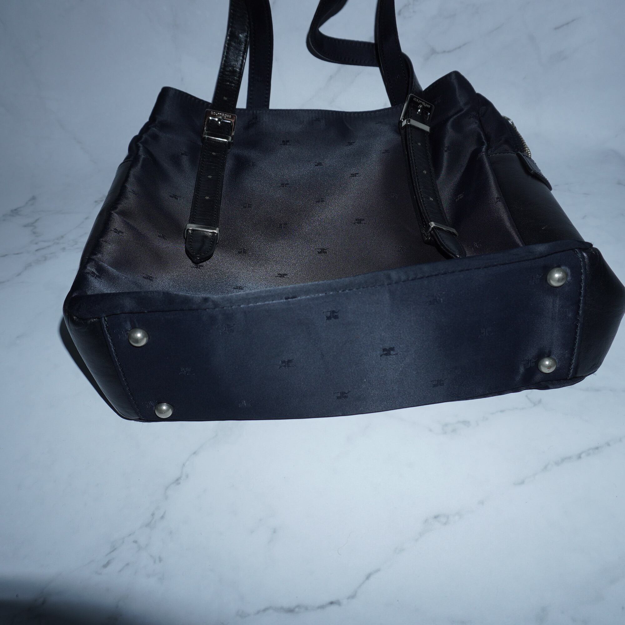 【Courrèges】クレージュ 総柄ロゴ ナイロン×レザートートバッグ BLACK