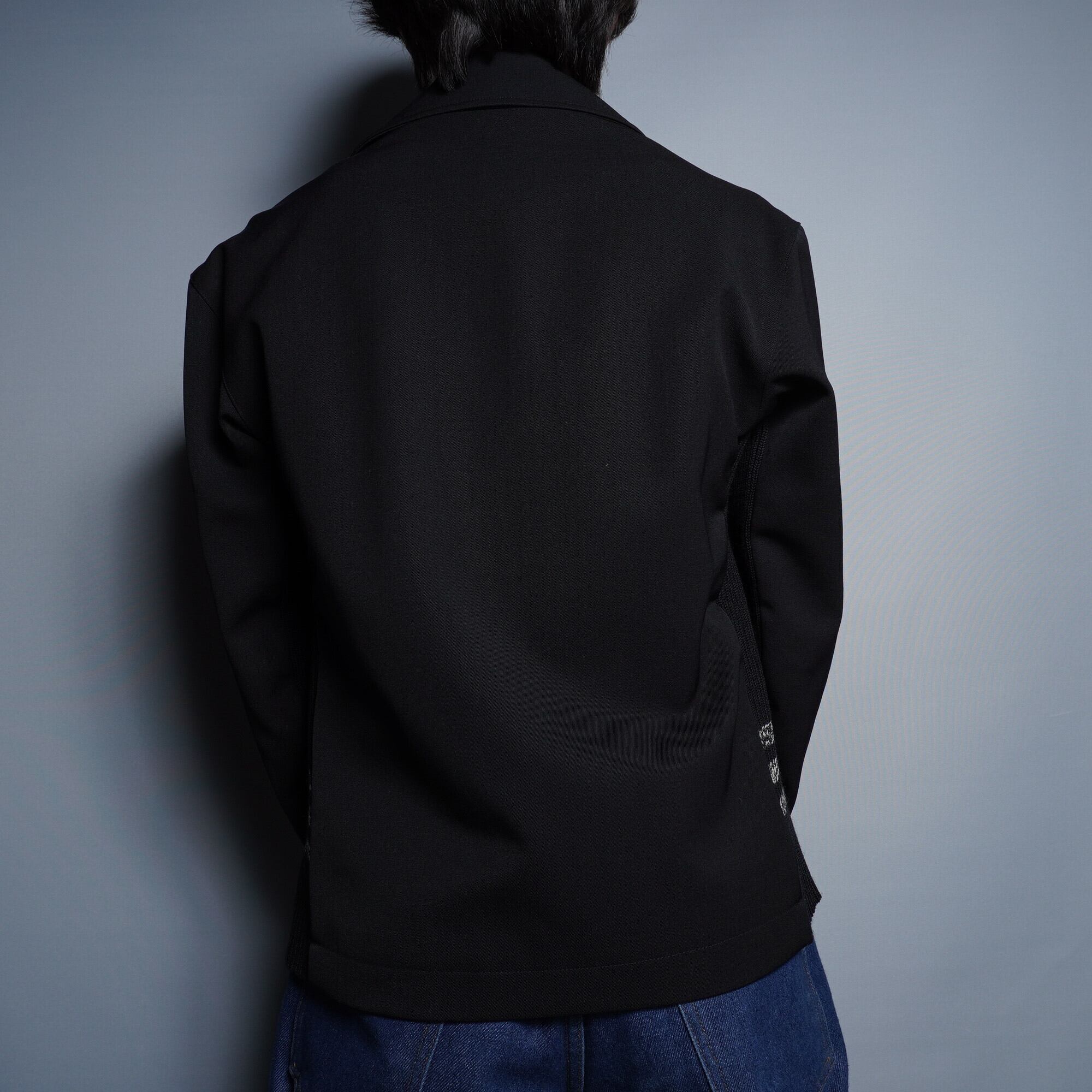 メイン素材はウールツイルになり、サイド・袖部分がリブで切り替わっている為、適度なフィット感が出て、上品なシルエットです。
