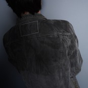 ブラックデニムにユーズド加工を施し、スナップボタンが2段階付いており、その閉め方によってトラックジャケットとライダースジャケットの二通りに着こなしを変化させられるデザイン製の高いアイテム