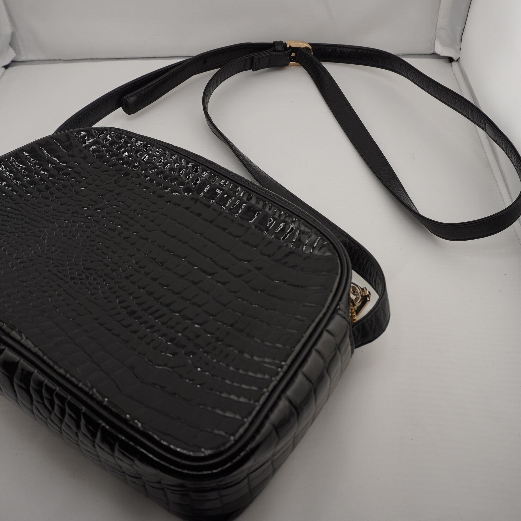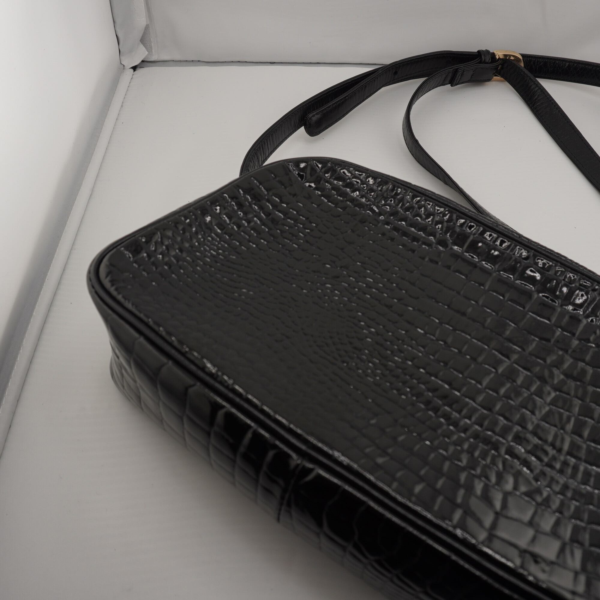 【Courrèges】クレージュ クロコ調 エナメルショルダーバッグ BLACK