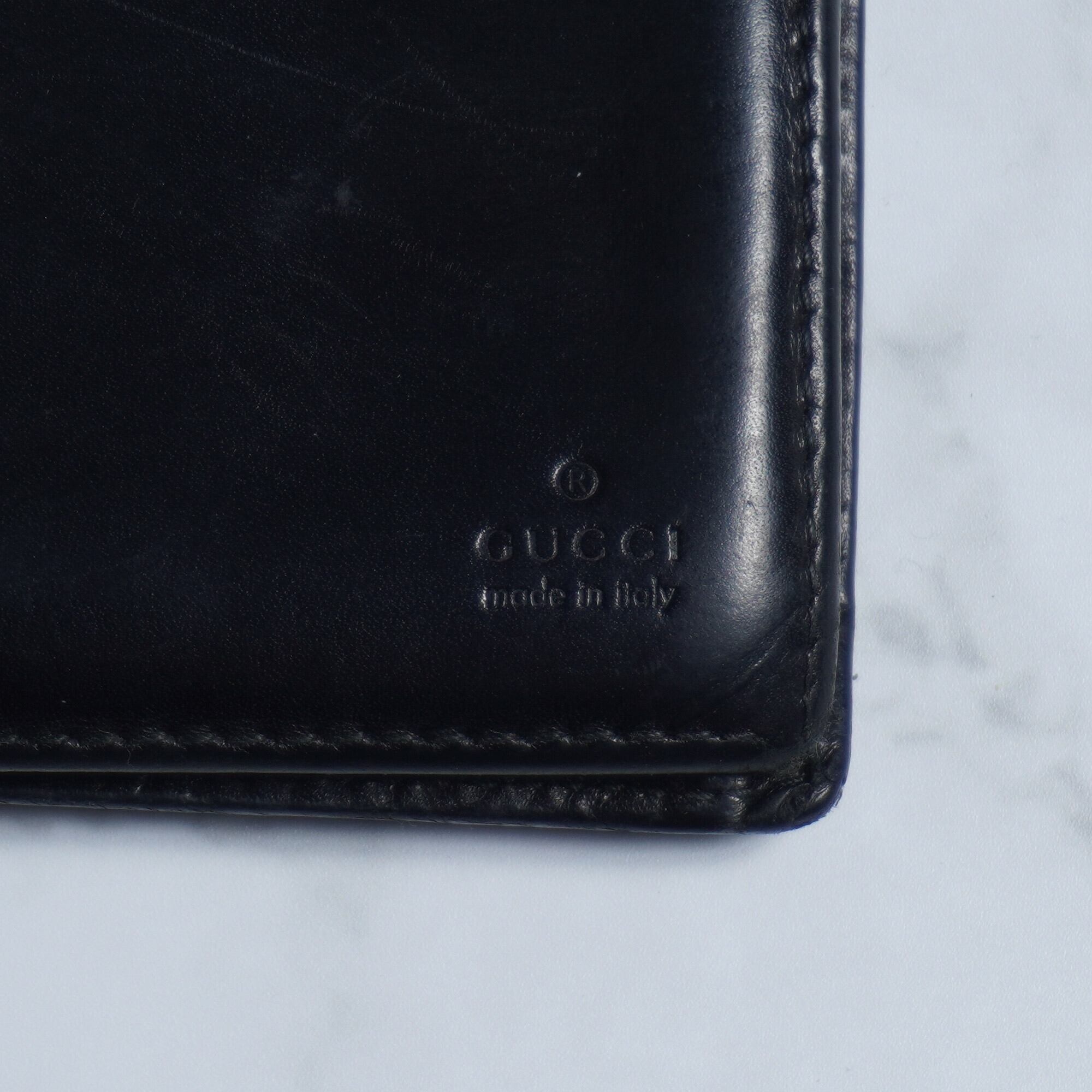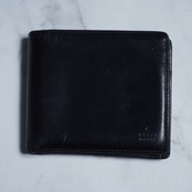 イタリア製の二つ折り財布。多少の使用感はあるものの、丁寧に使われており艶感も程よく出てきている。主張控えめのロゴ刻印のみなので、大人っぽい雰囲気を感じる一品。