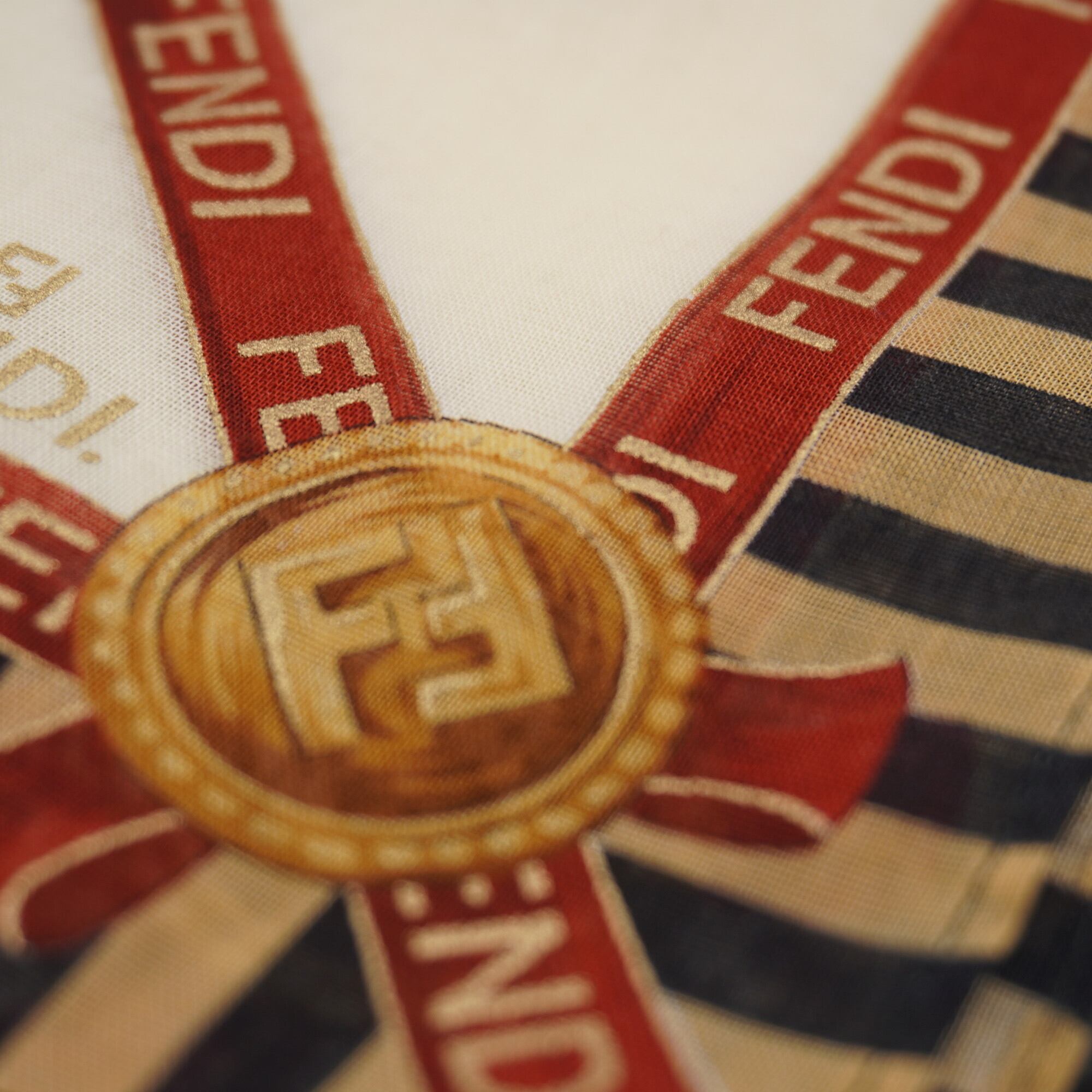 フェンディのスカーフ&ハンカチ。金色のロゴがポイントのアイテム。デザイン性が高くコーデのアクセントにも使えます。