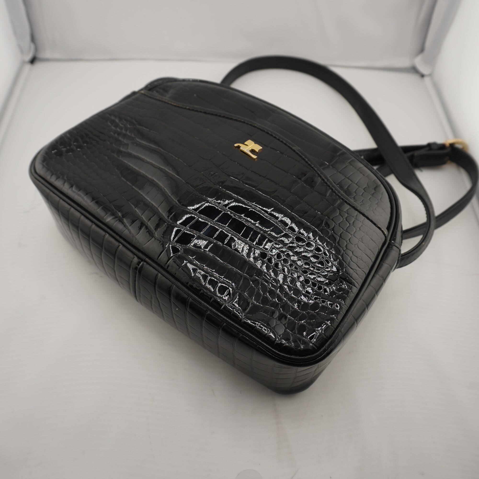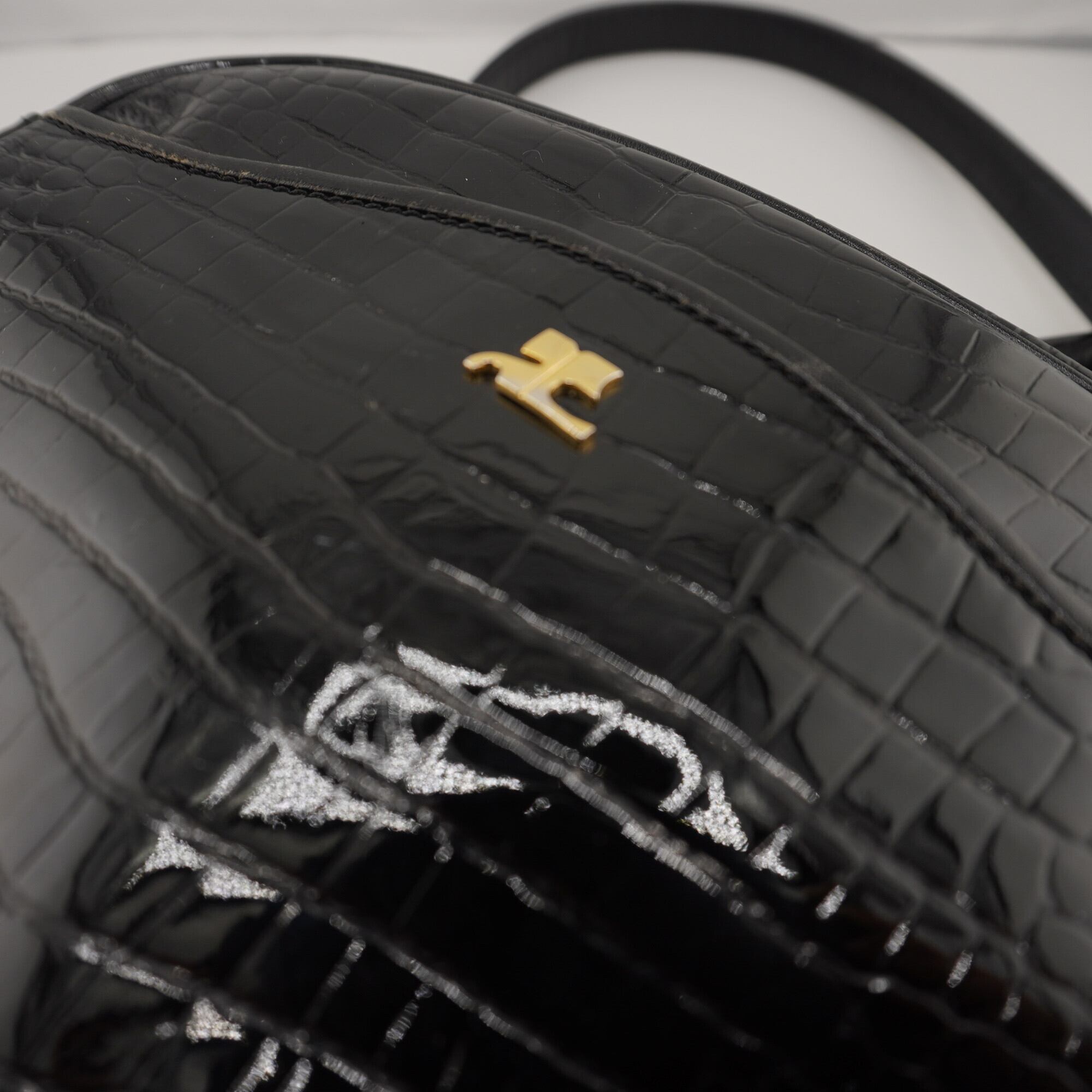 【Courrèges】クレージュクロコ調ラウンドポケットエナメルショルダーバッグ black