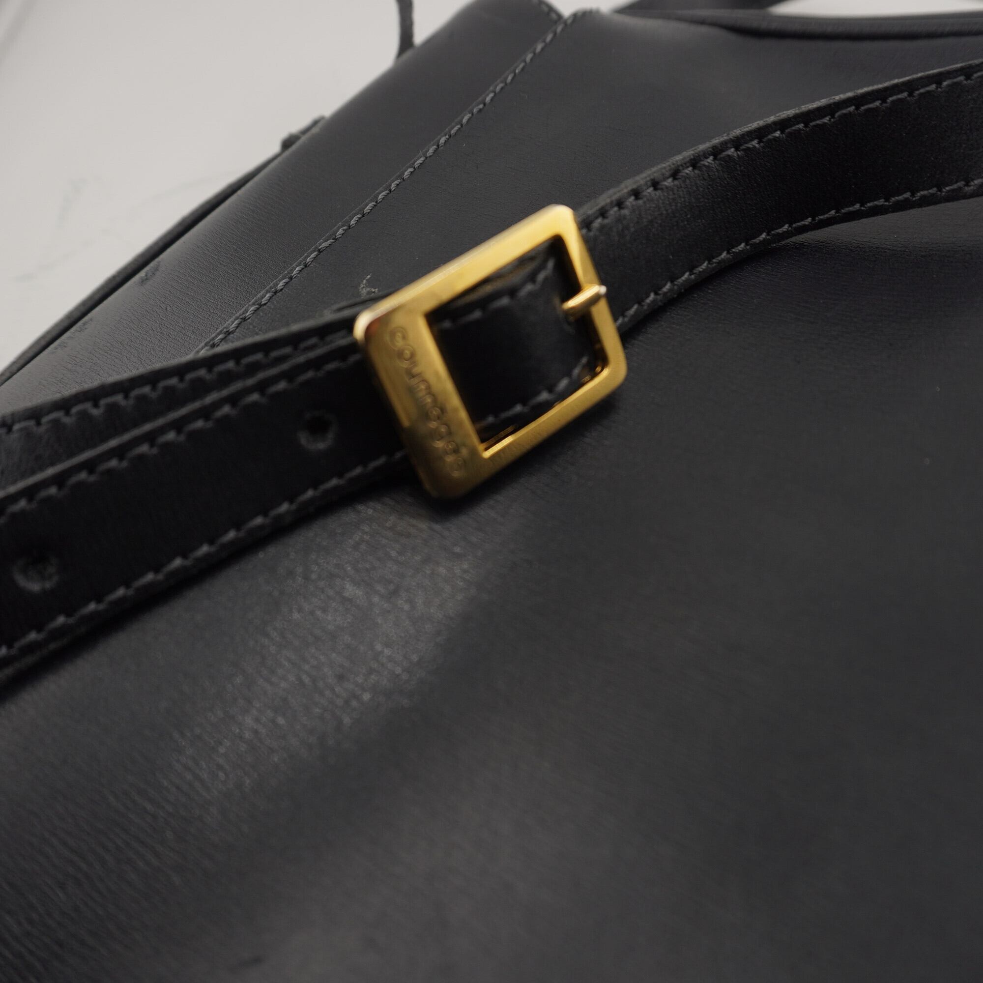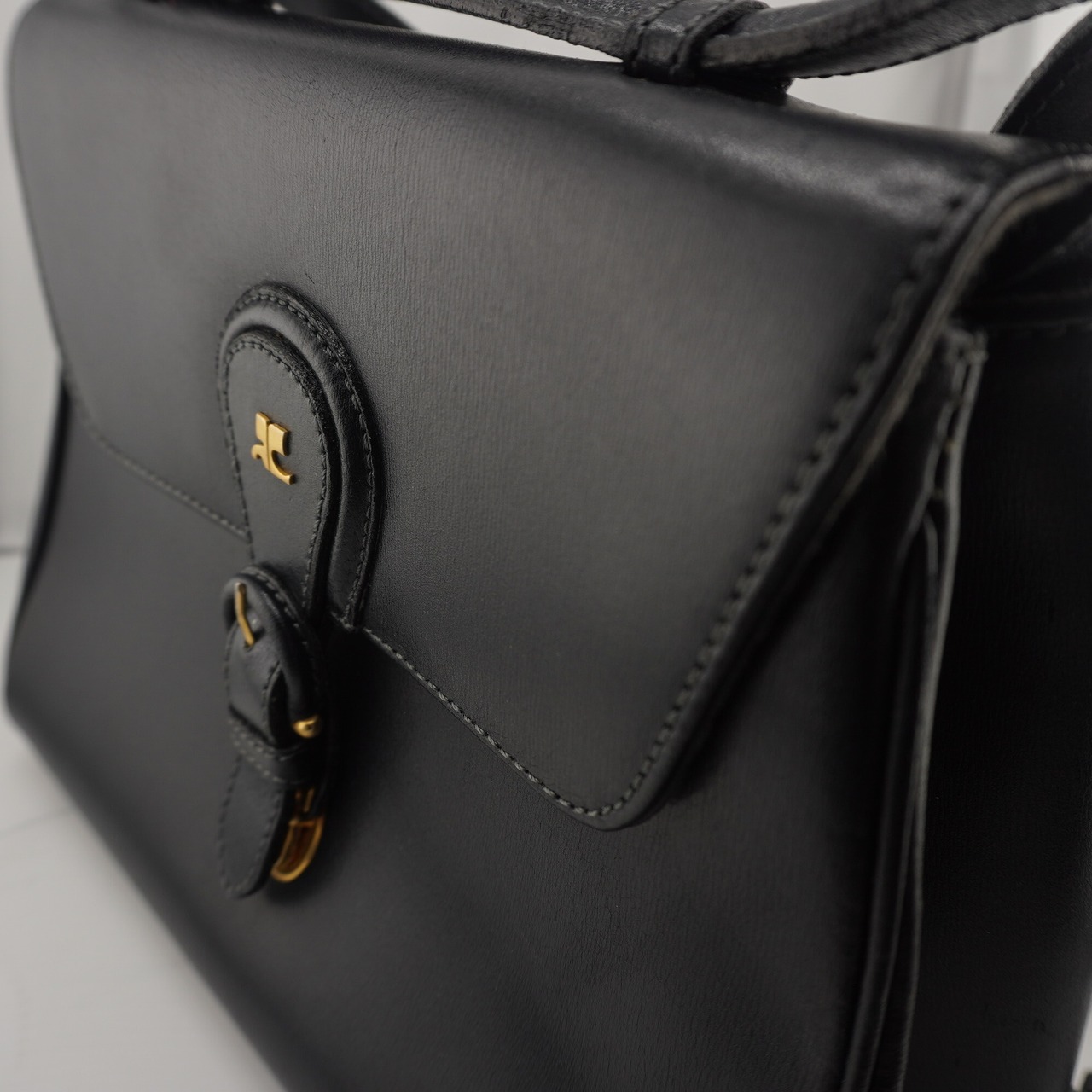 【Courrèges】クレージュ レザー ロゴフラップベルトショルダーバッグ black