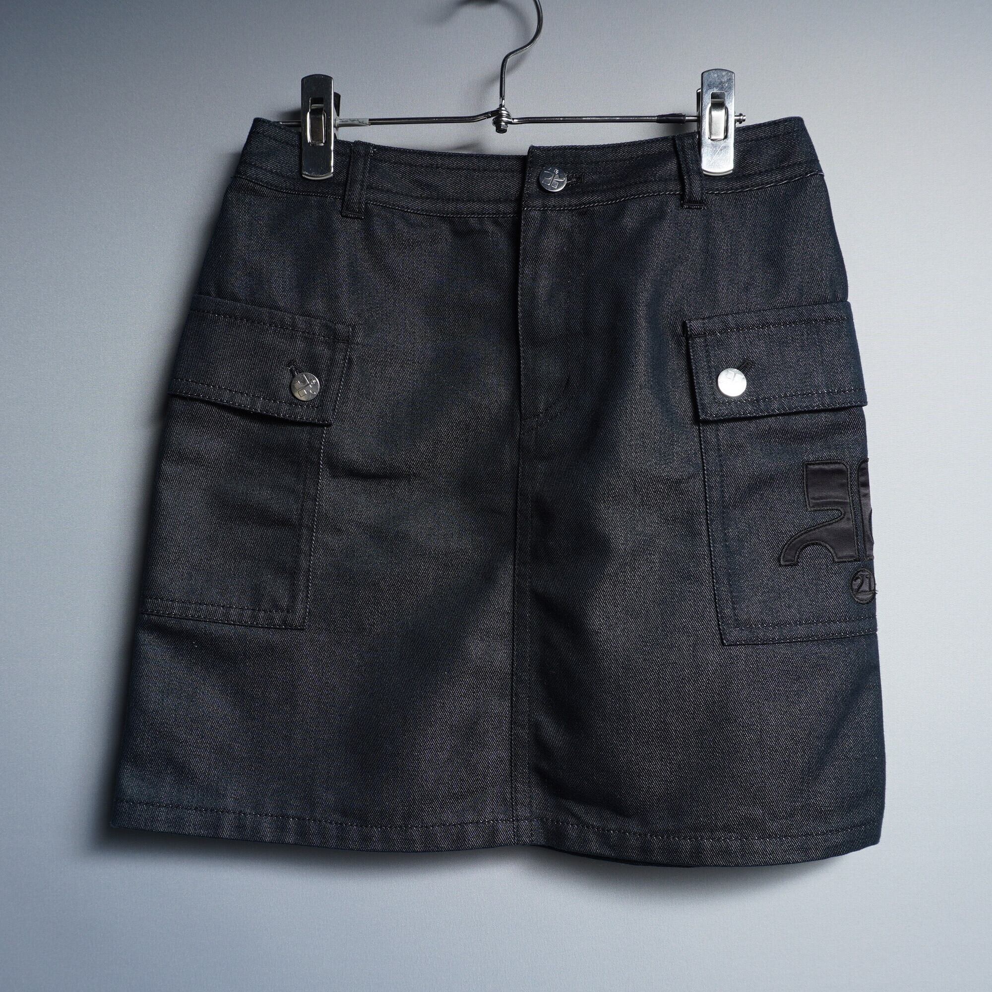 【Courrèges】クレージュ サイドポケットロゴ ミニスカート blueblack