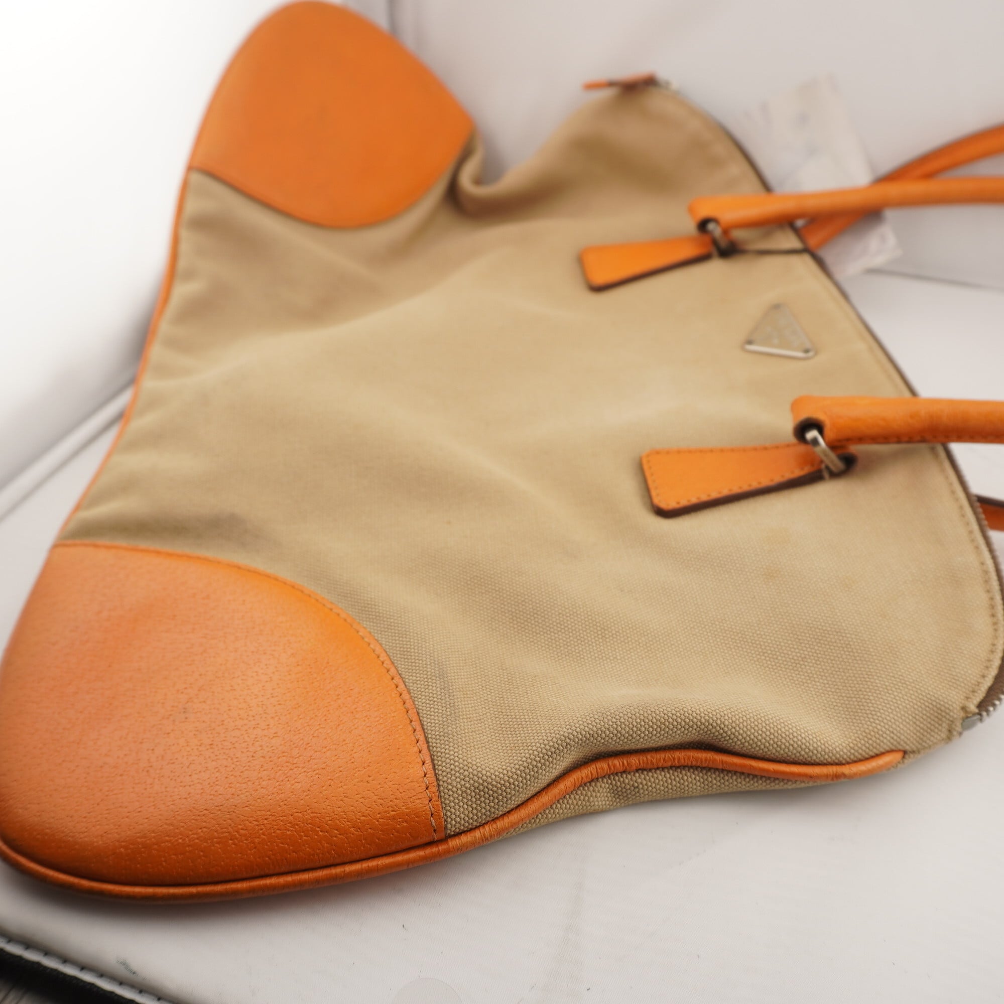 【PRADA】プラダ トートバッグキャンバスレザー beige orange
