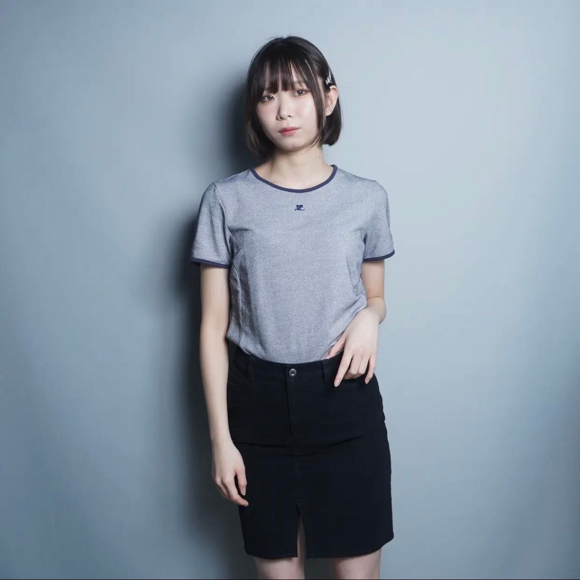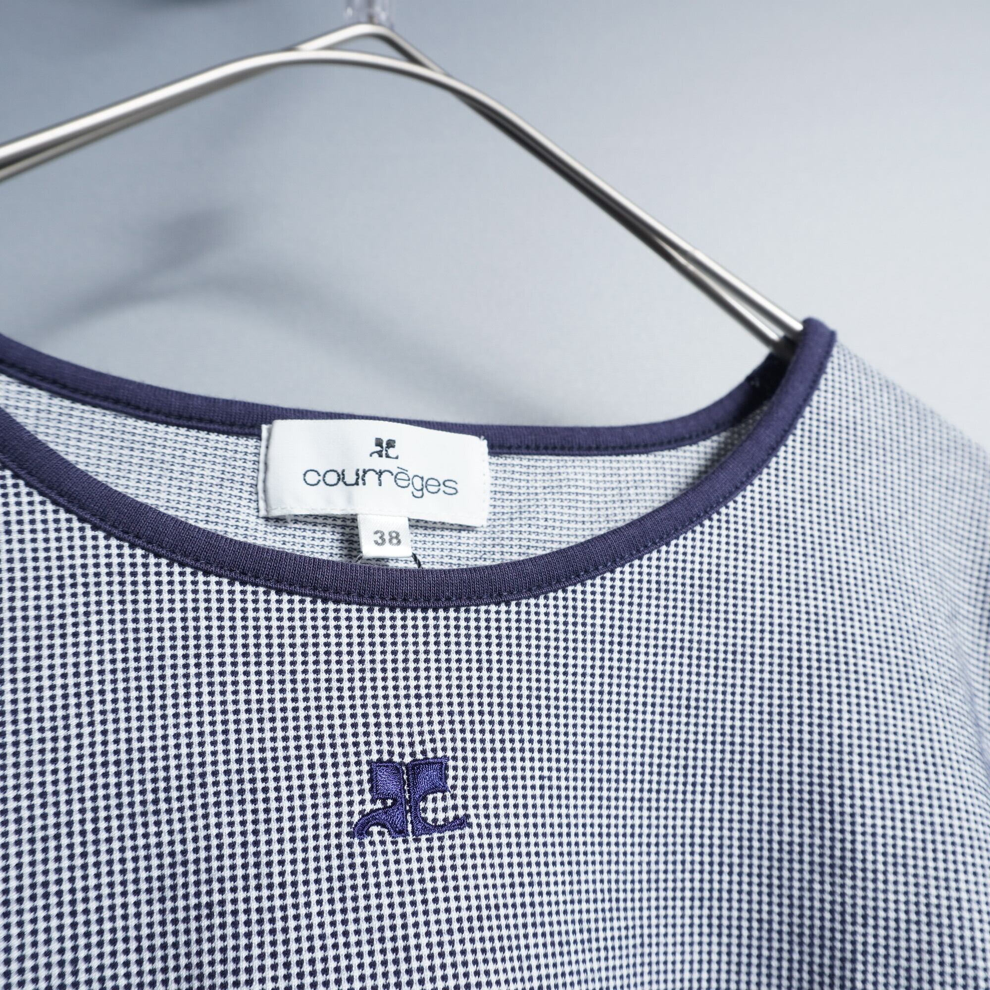 【Courréges】クレージュ ロゴ チェック トップス navy