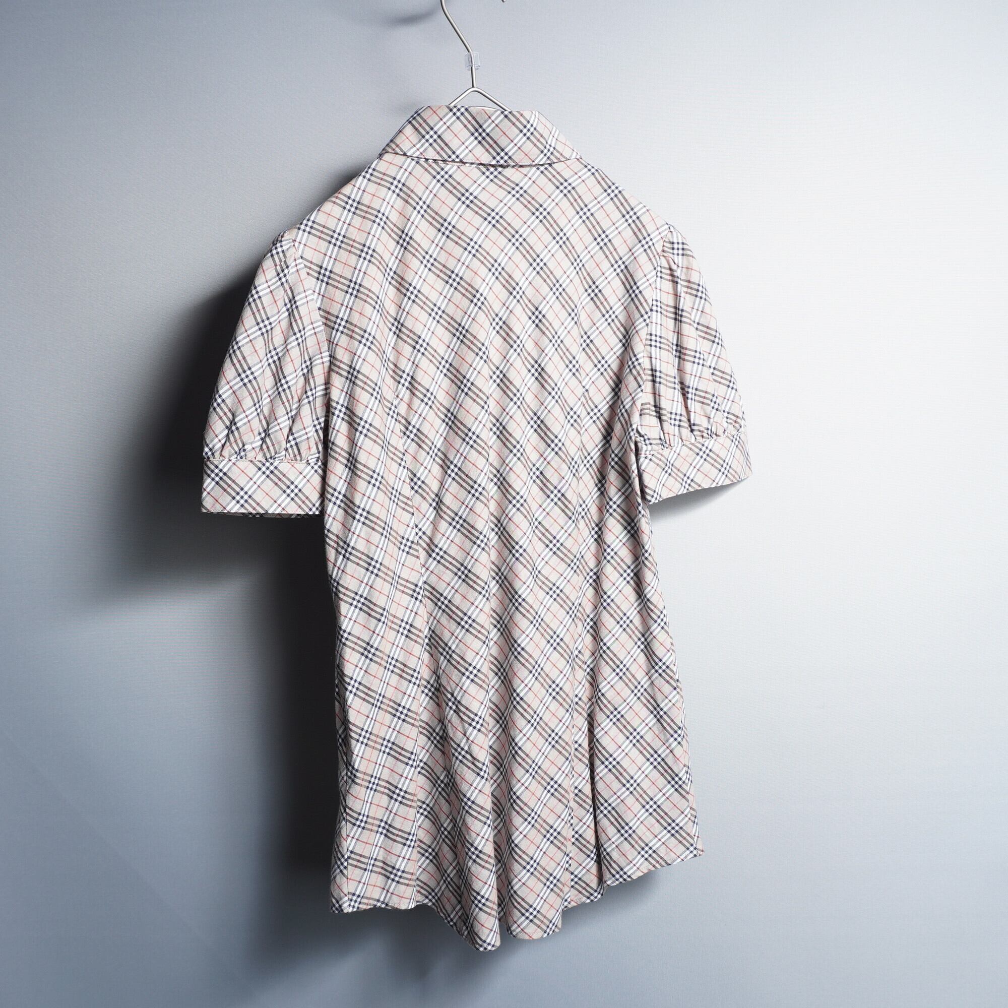 【BURBERRY】バーバリー パフスリーズ ノバチェック ブラウス Beige×Red