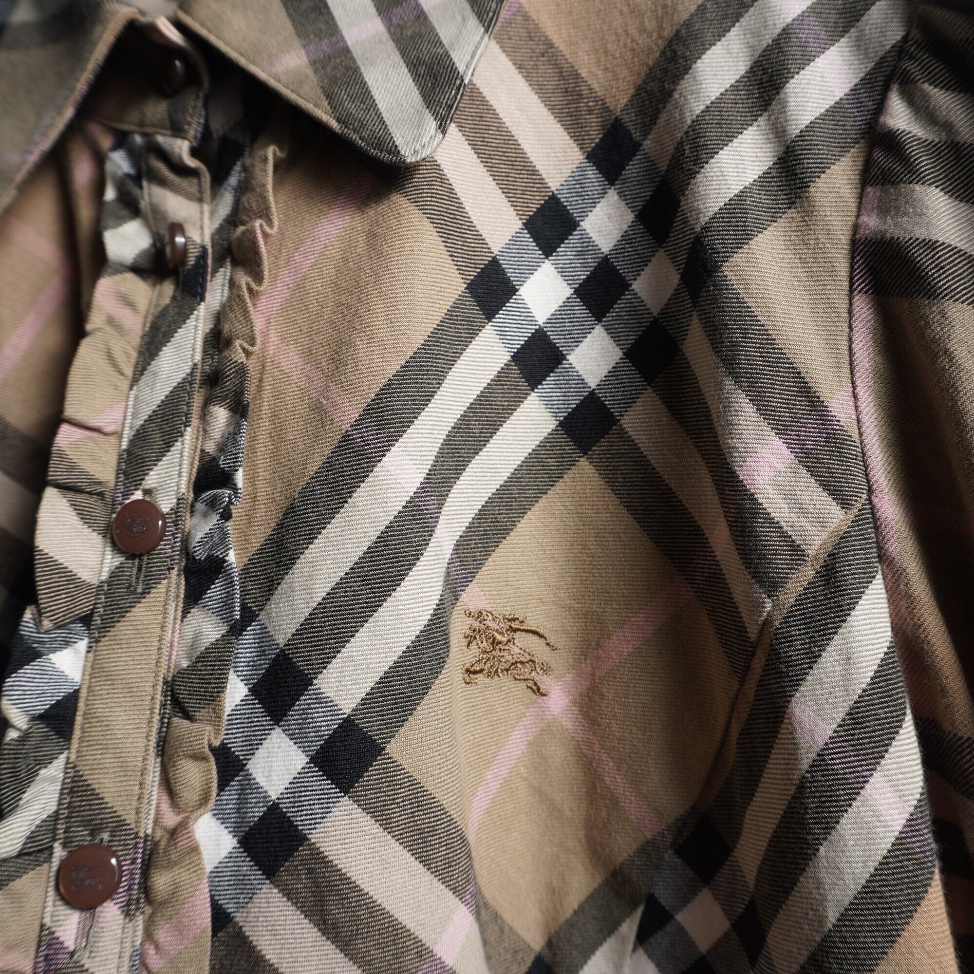 【BURBERRY】バーバリー パフスリーブ ノバチェック フリルブラウス Beige