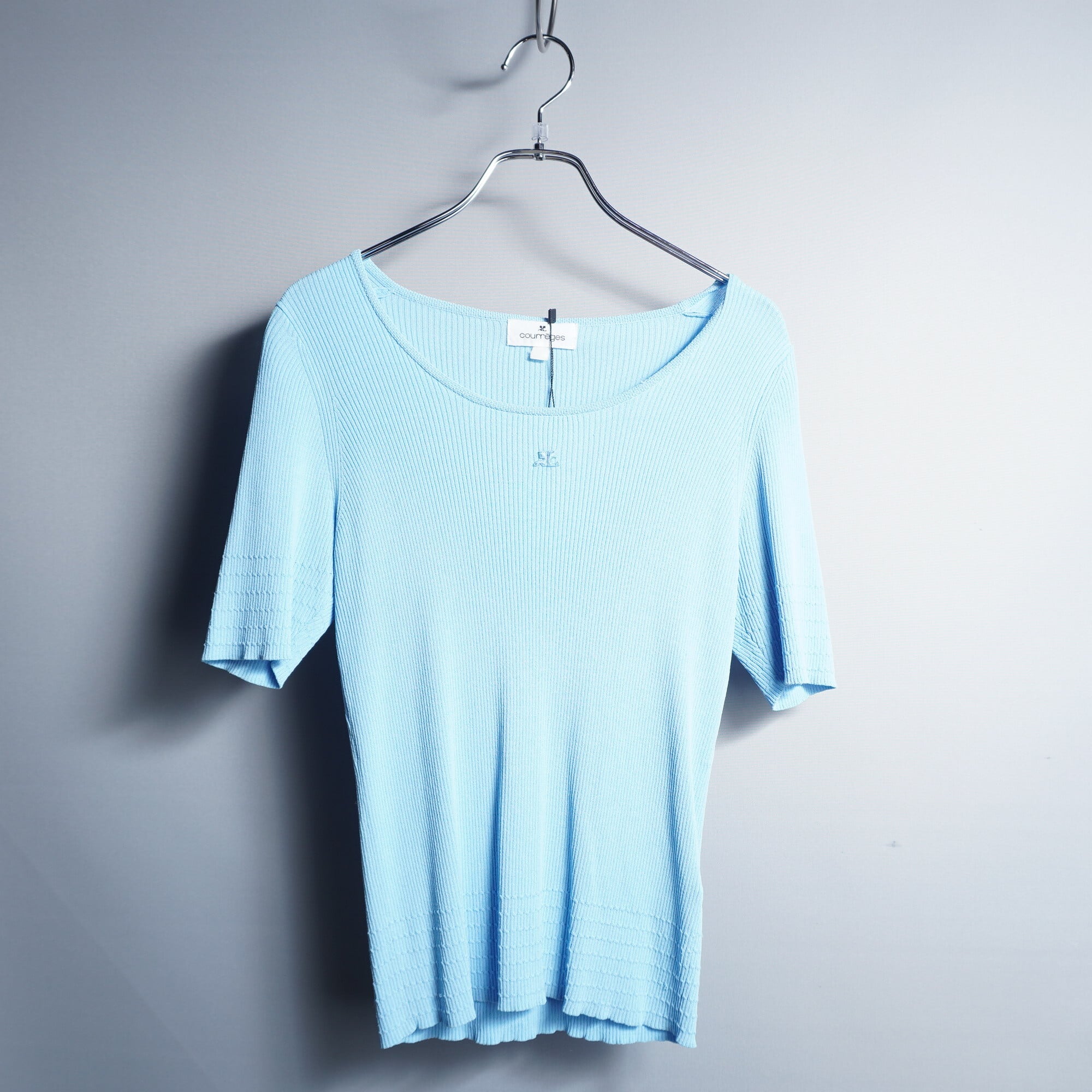 【Courréges】クレージュ ロゴリブトップス iceblue