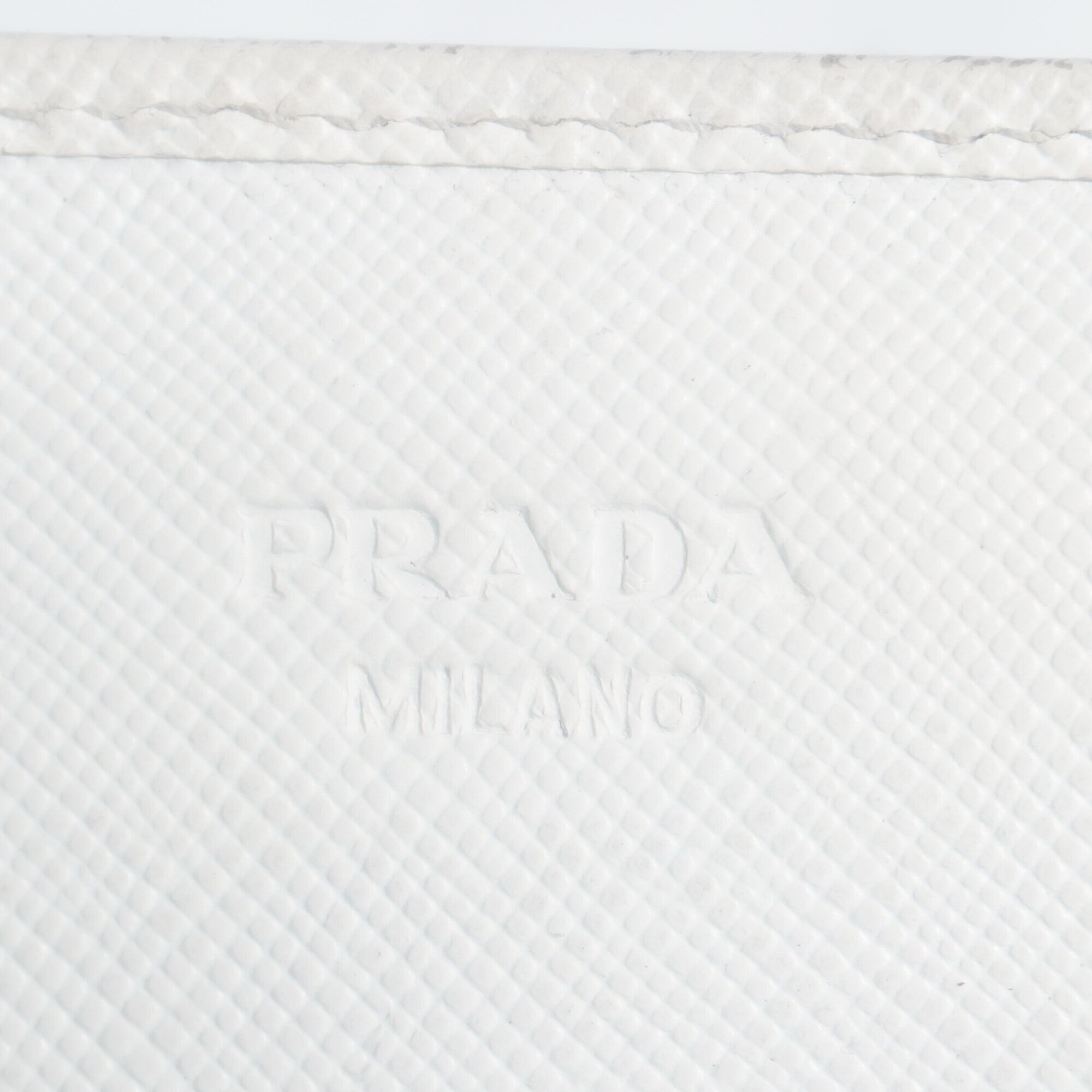 プラダのトライアングルアイコンが入った財布。サフィアーノレザーという細かい独特な筋模様の型押し加工を施した牛革を使用しています。傷や汚れがつきにくく、丈夫な素材です。張りのある硬めのレザーで上品なラグジュアリー感を出してくれています。