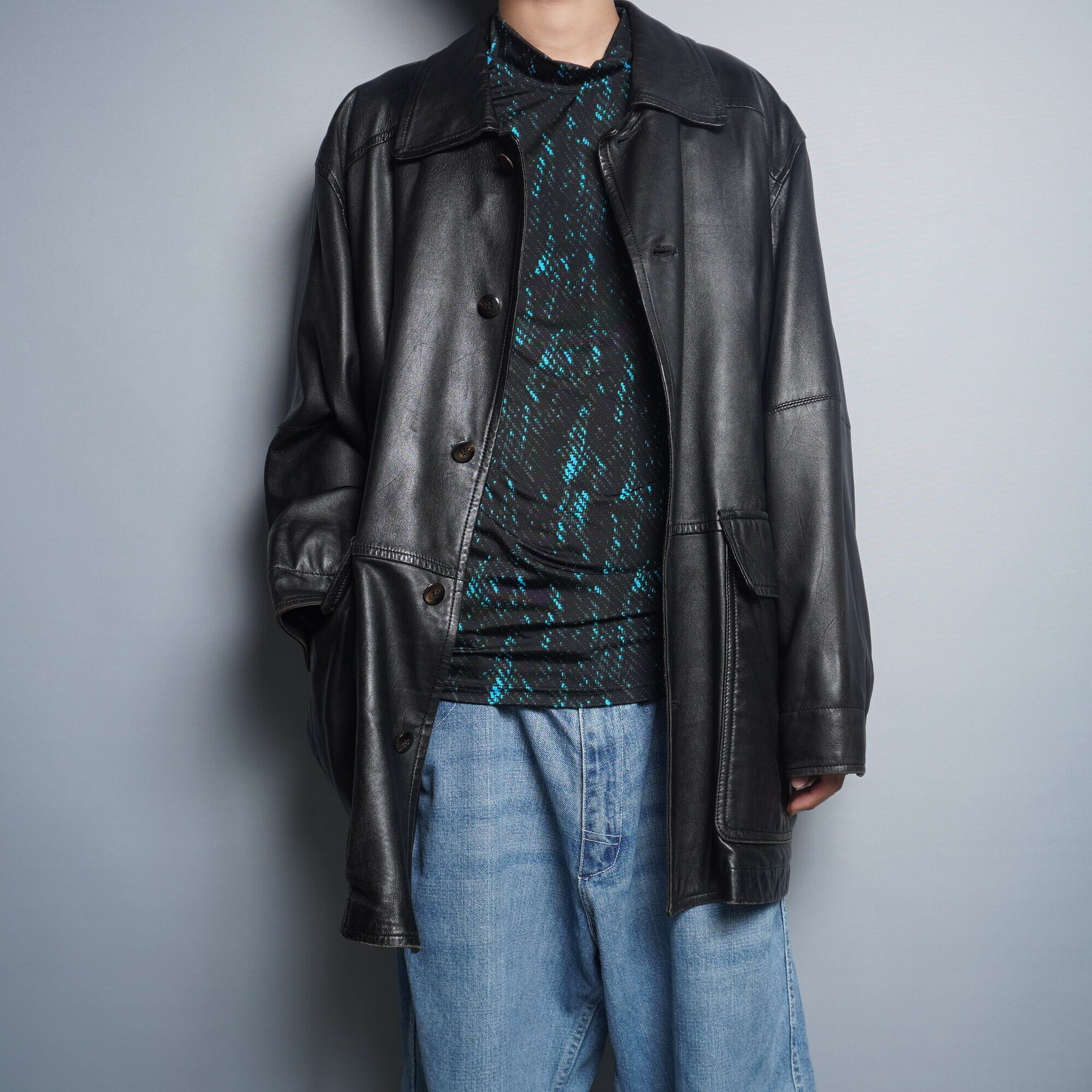 【Christian Dior】クリスチャンディオール オーバーサイズ ブラックラムレザー コート