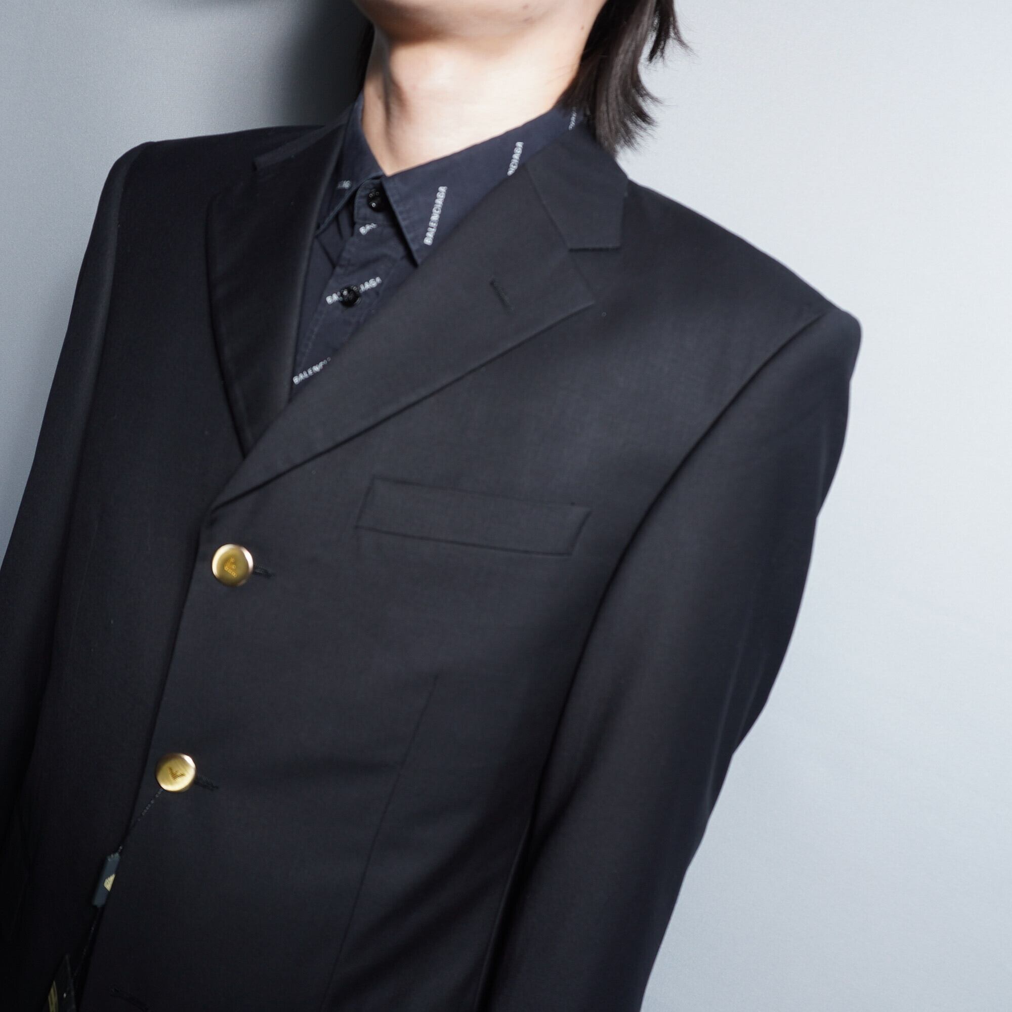 【GIORGIO ARMANI】ジョルジオアルマーニ "金ボタンロゴ刻印入" セットアップ black