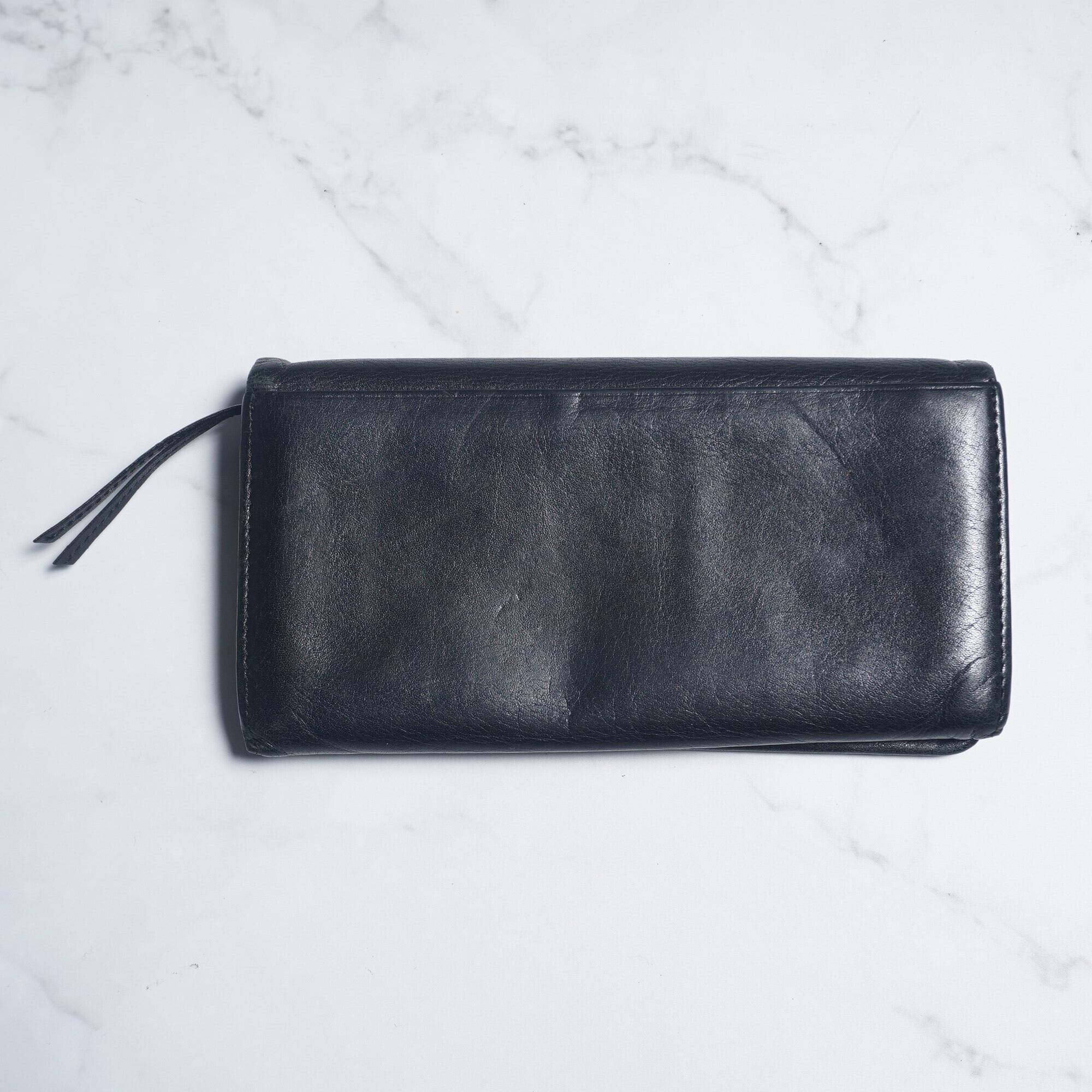 ブランドのアイコンともいえるオーブがの刻印が印象的な黒無地レザーの長財布。収納力も優れ、当ブランドの魅力が詰まった一品。
