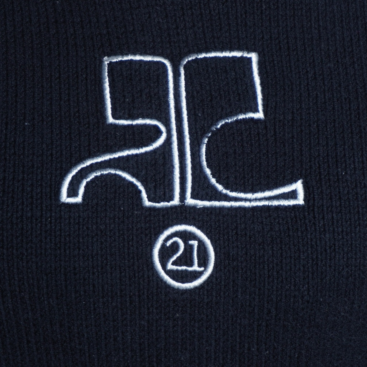 クレージュのロゴがボディの前面に入ったフードニットプルオーバー。フードが付いているので、シンプルなニットやプルオーバーより着こなしが楽しめる一品となっております。