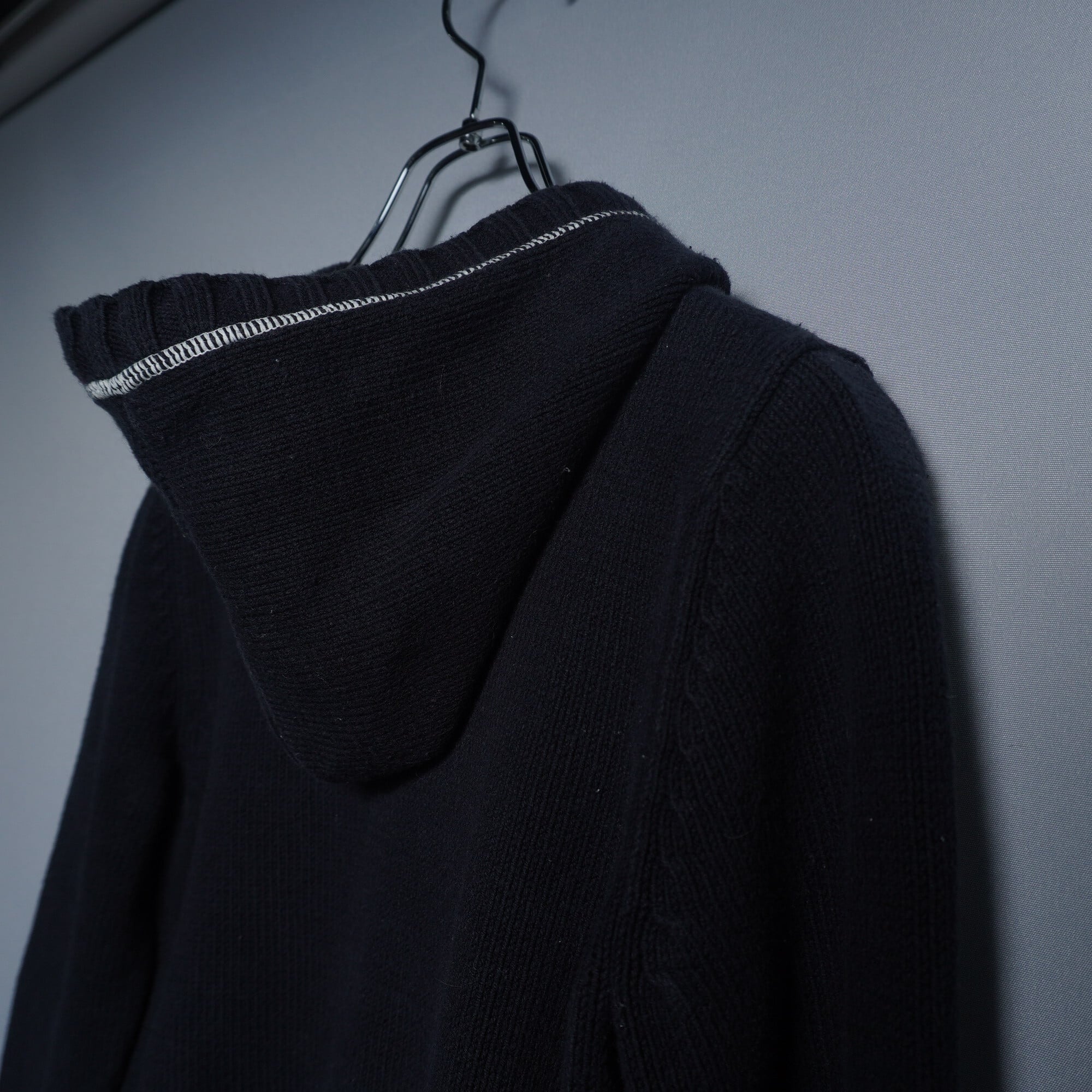 【Courréges】クレージュ bigロゴ フードニット プルオーバー パーカー Black