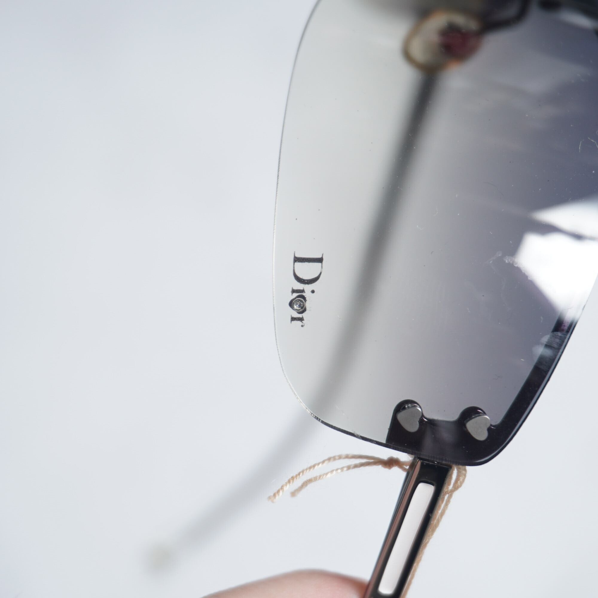 Diorのリムレスサングラス。2022年頃から再流行しているリムレスタイプで、留め具の部分がハートになっている可愛らしい一品です。