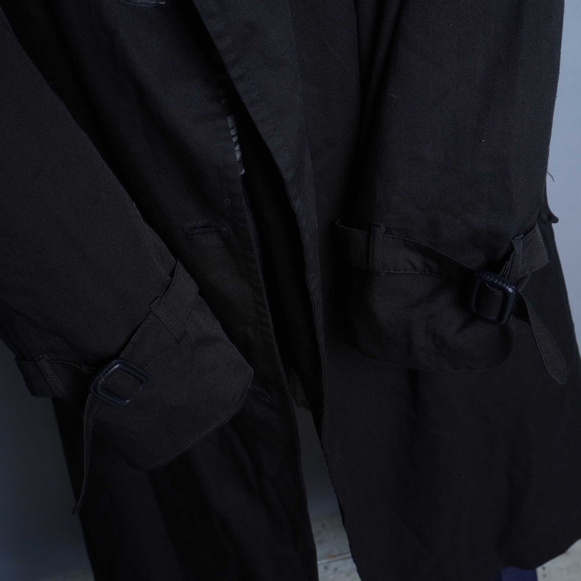当店では定番のブラックトレンチコート。今回は珍しく"made in USA"のタグ付きでの紹介。古着好きにはたまらないアメリカ製でかつブラックカラー。着るのはもちろん見るのでも雰囲気を感じる一着。