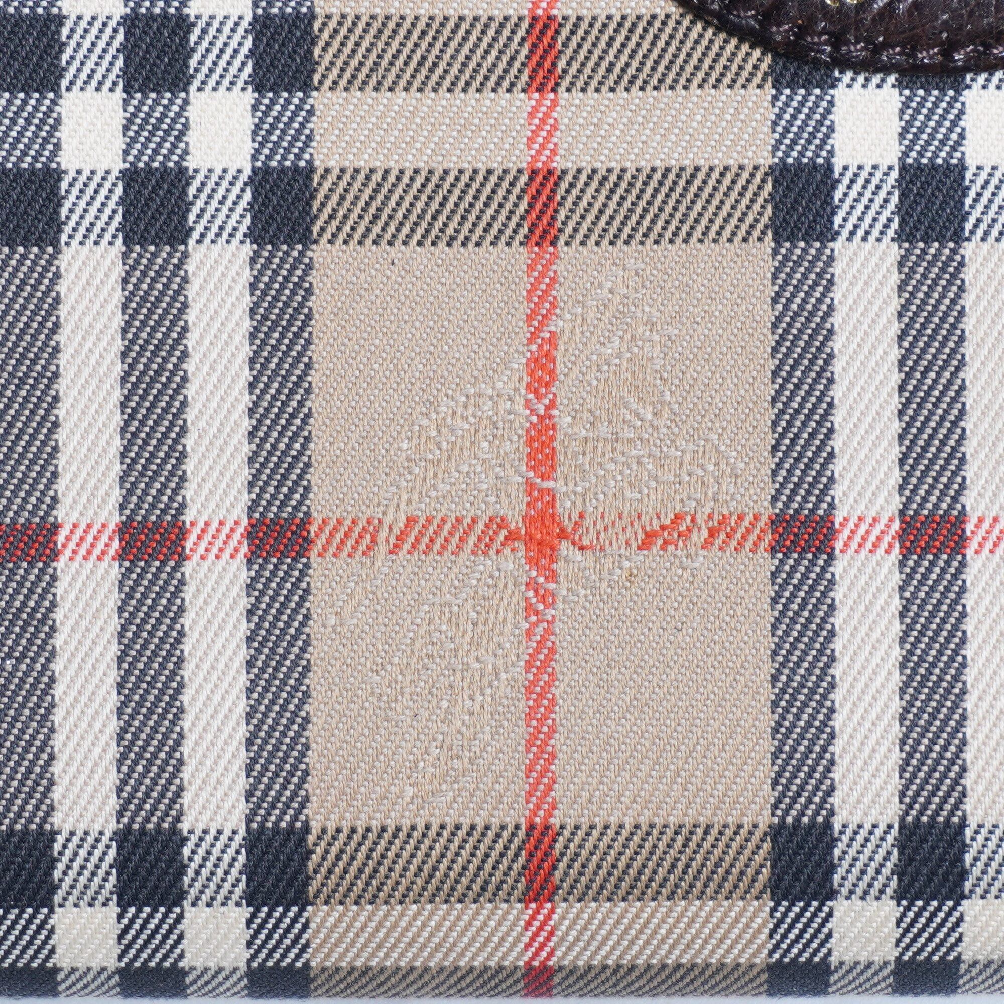 当ブランドが得意とするノバチェックとブランドロゴが全面に押し出された二つ折り財布。レザーで縁取られており、デザイン性と大人な雰囲気を両立しています。