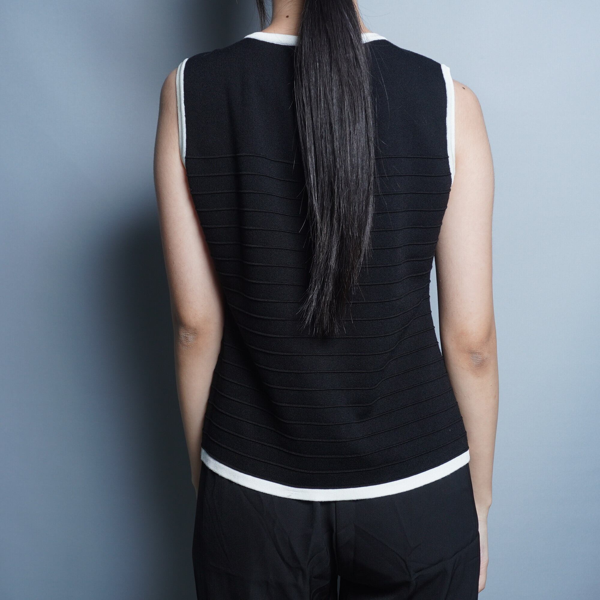 【Courréges】クレージュ ロゴ入 ノースリーブニット バイカラー black×white