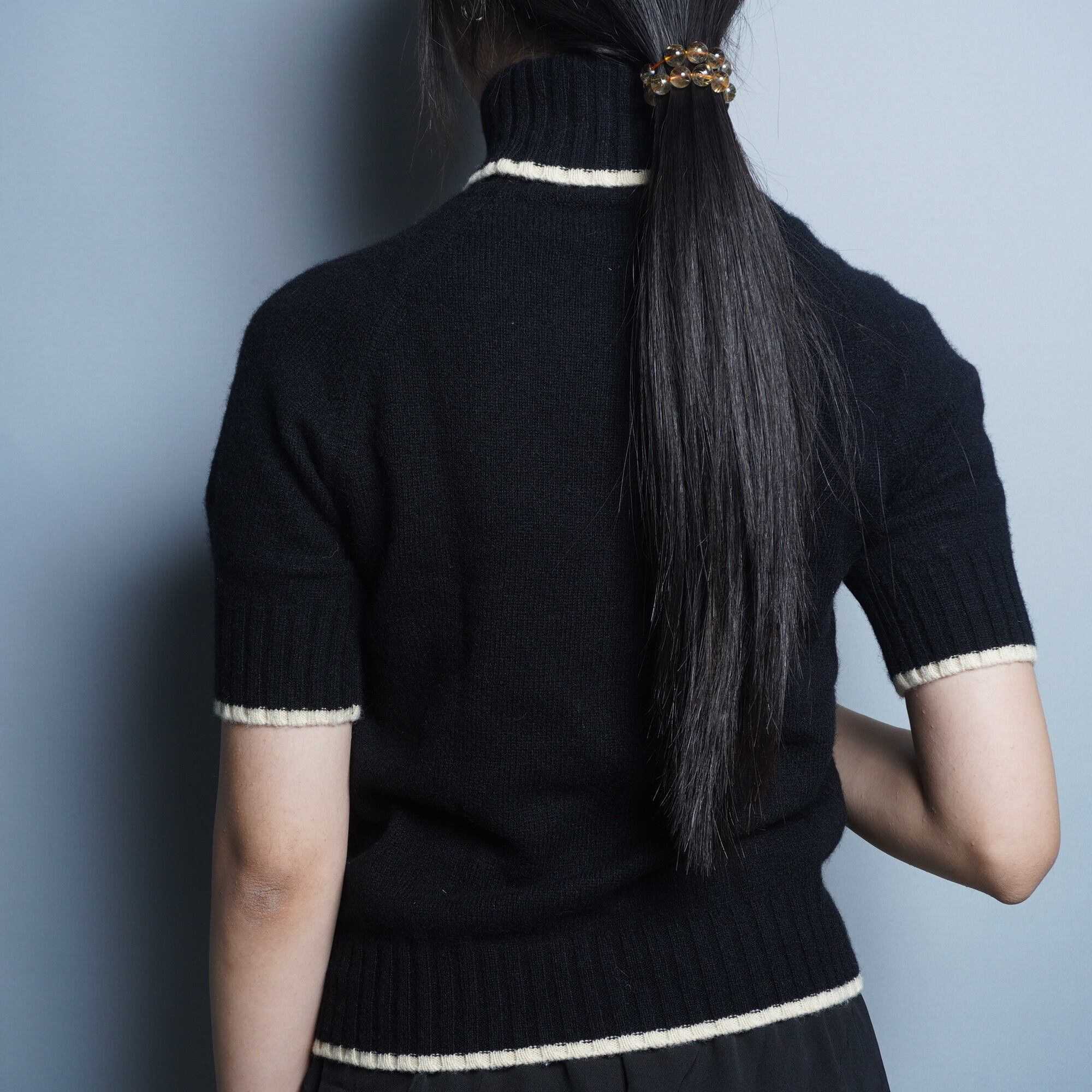 【Courréges】クレージュ タートルニット 黒白バイカラー black×white