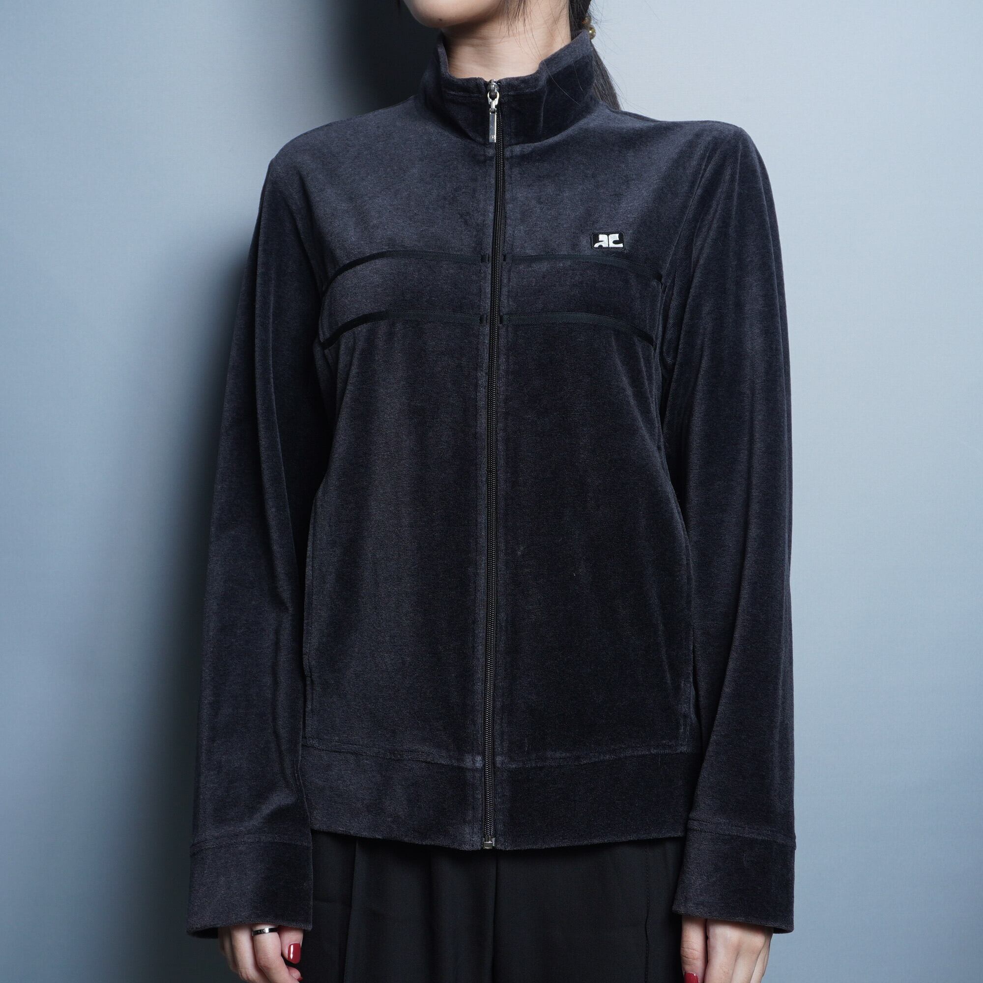 【Courréges】クレージュ ロゴ入 ベロア トラックジャケット black