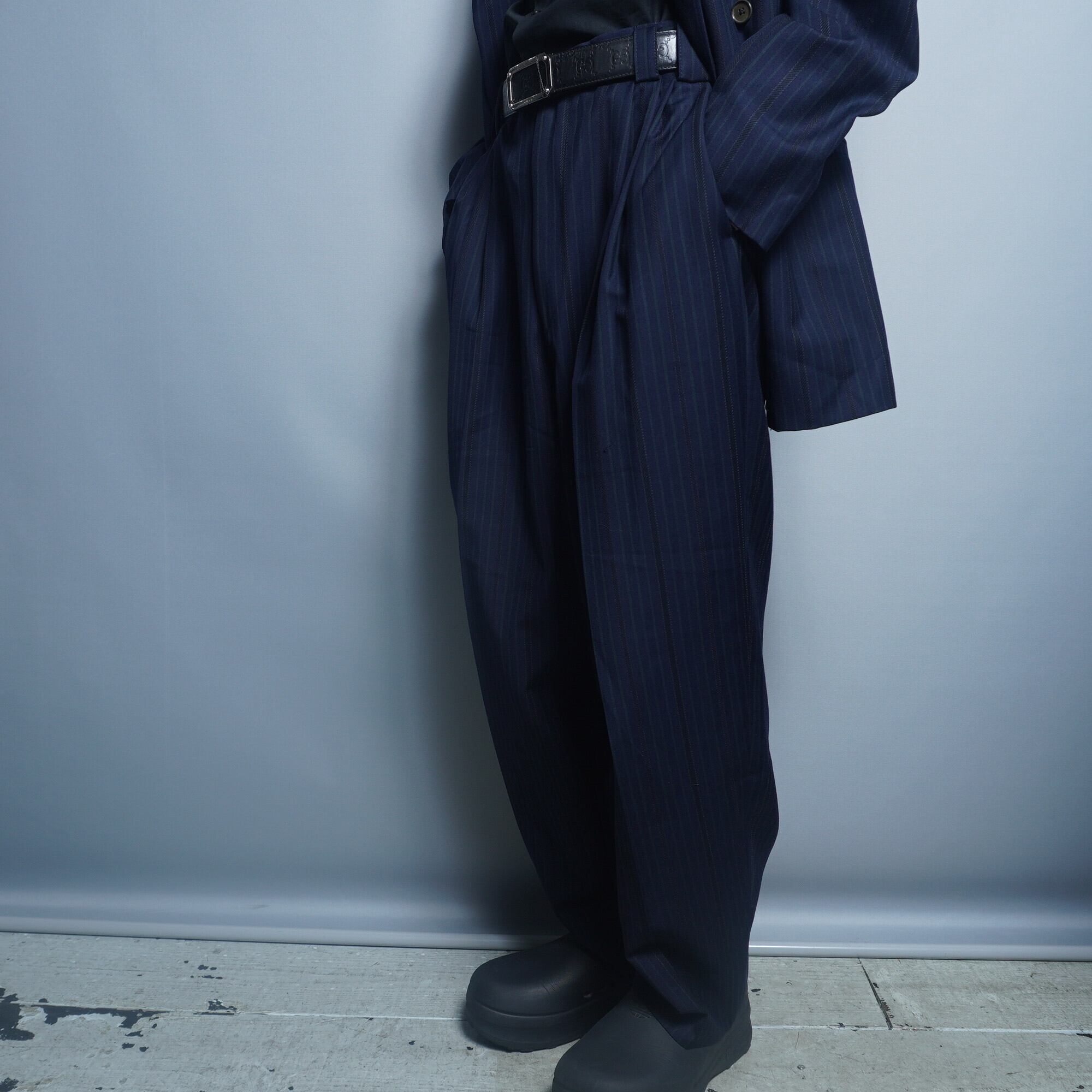 【VERSACE】ヴェルサーチ ストライプシングルセットアップスーツ navy