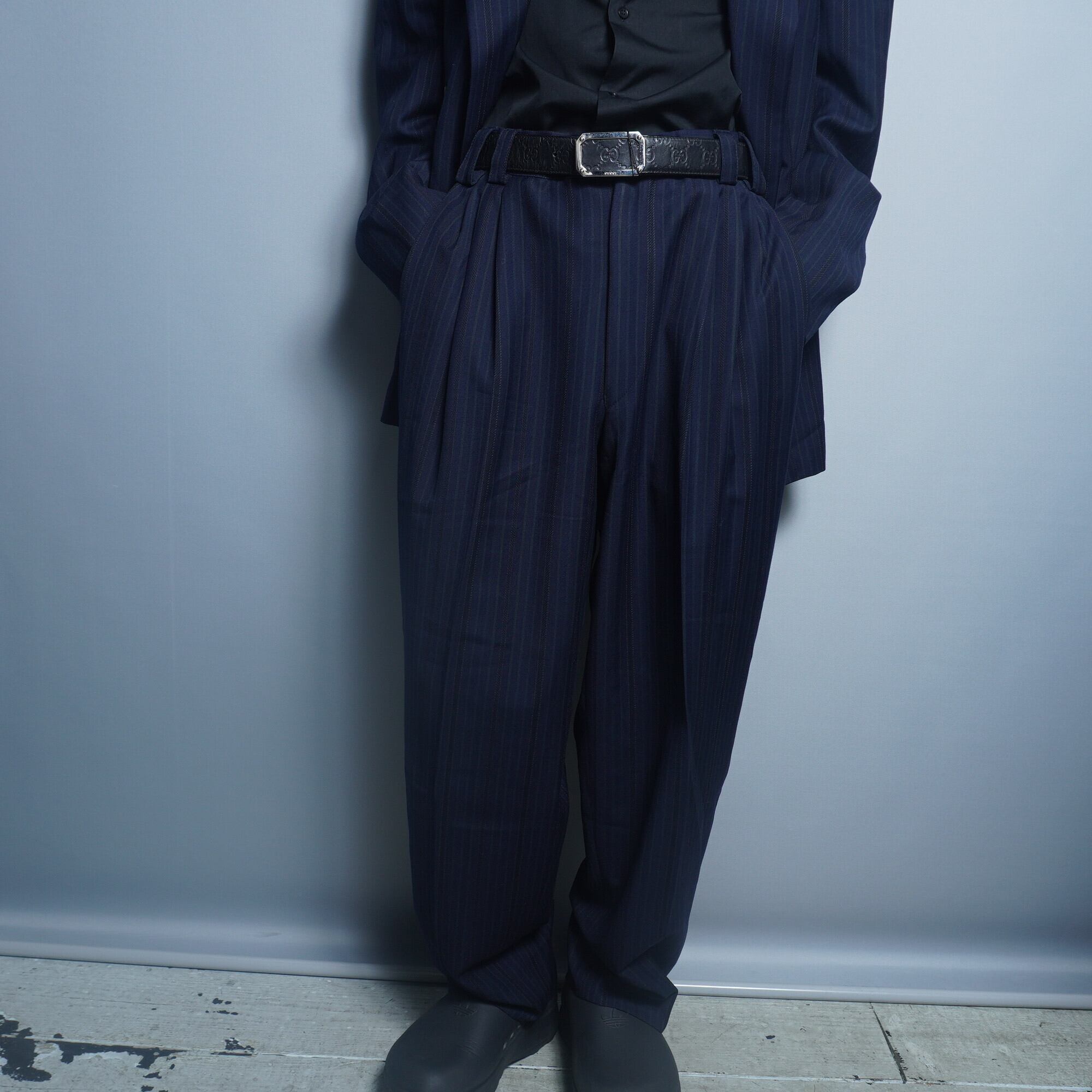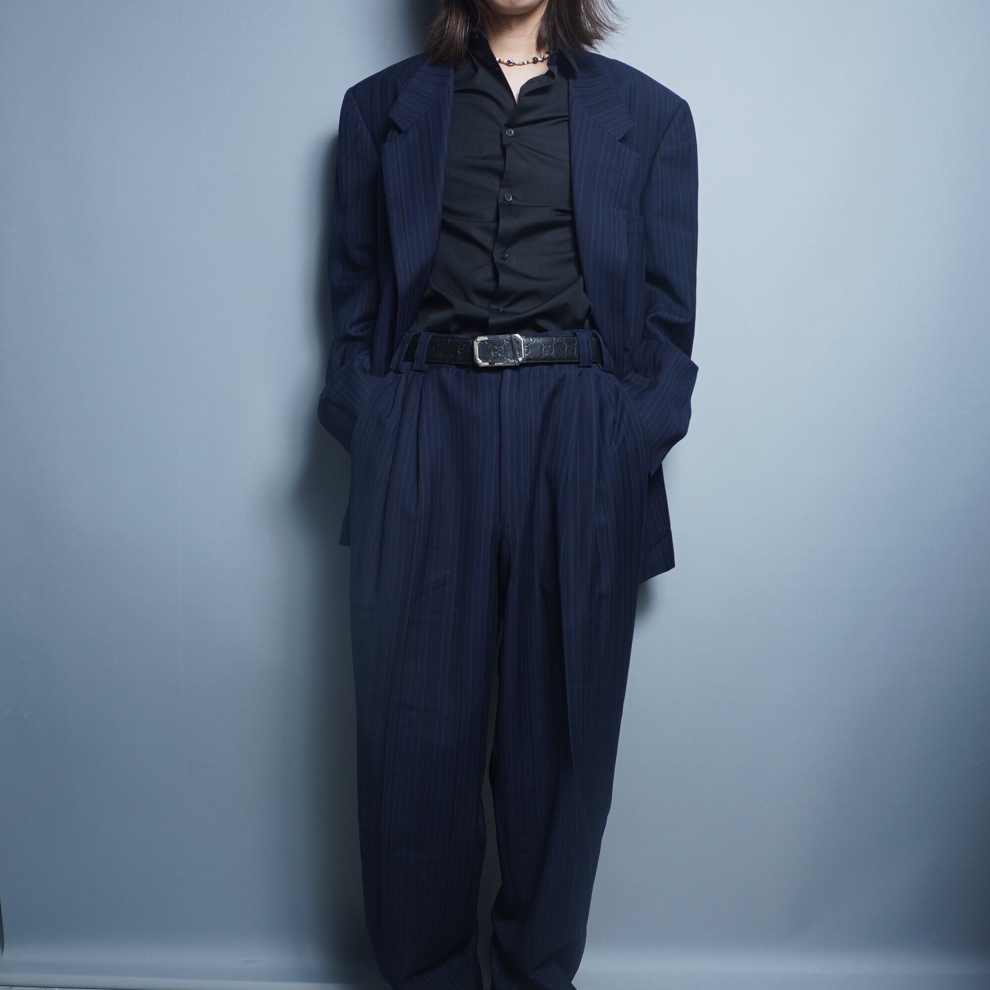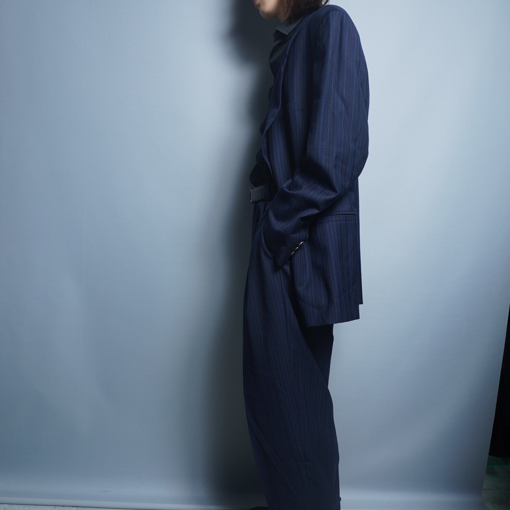 【VERSACE】 ヴェルサーチストライプウールダブルセットアップスーツネイビー