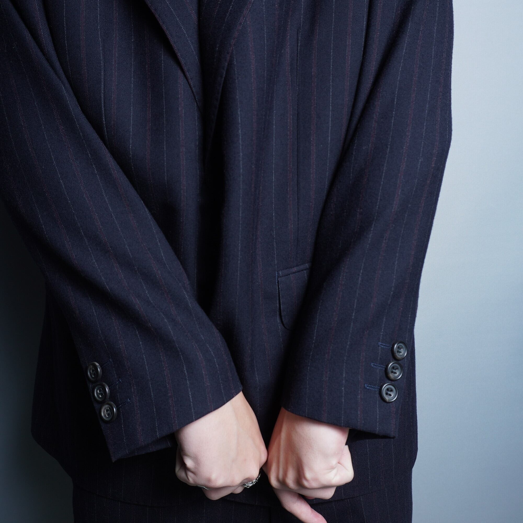 【BALENCIAGA】バレンシアガ 2B wool チョークストライプ セットアップ darknavy