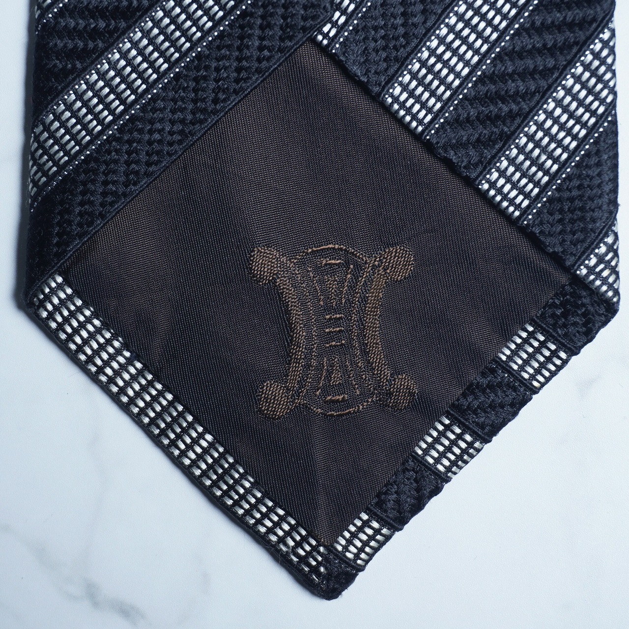 【CELINE】セリーヌ Silk 100% ストライプ柄ネクタイ ネクタイ Black