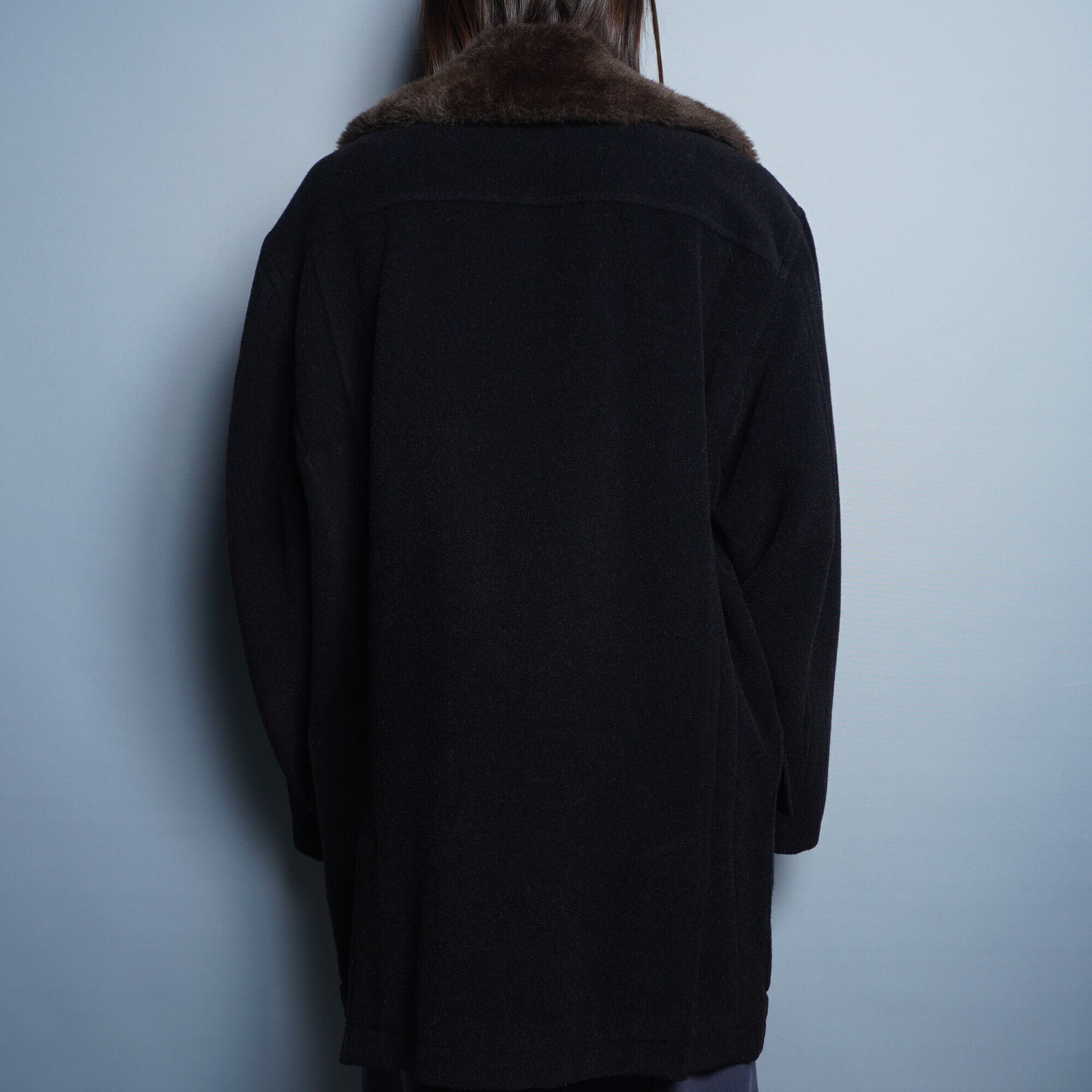 【Christian Dior】クリスチャンディオール 圧縮ウール取り外しファー付きコート black