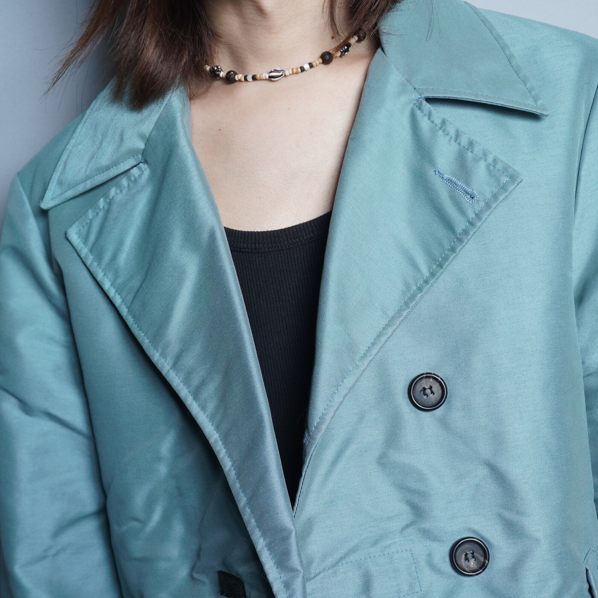 【Yves Saint Laurent】イヴ・サンローラン ダブルナイロンハーフコート saxblue