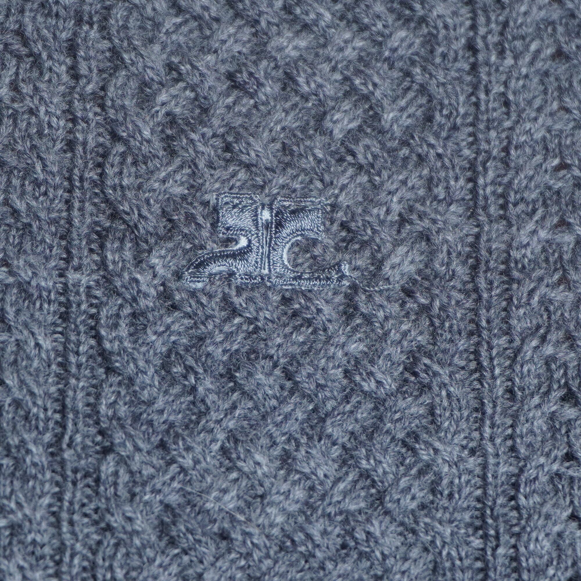 【Courréges】クレージュ ロゴ入りケーブルニットセーター gray