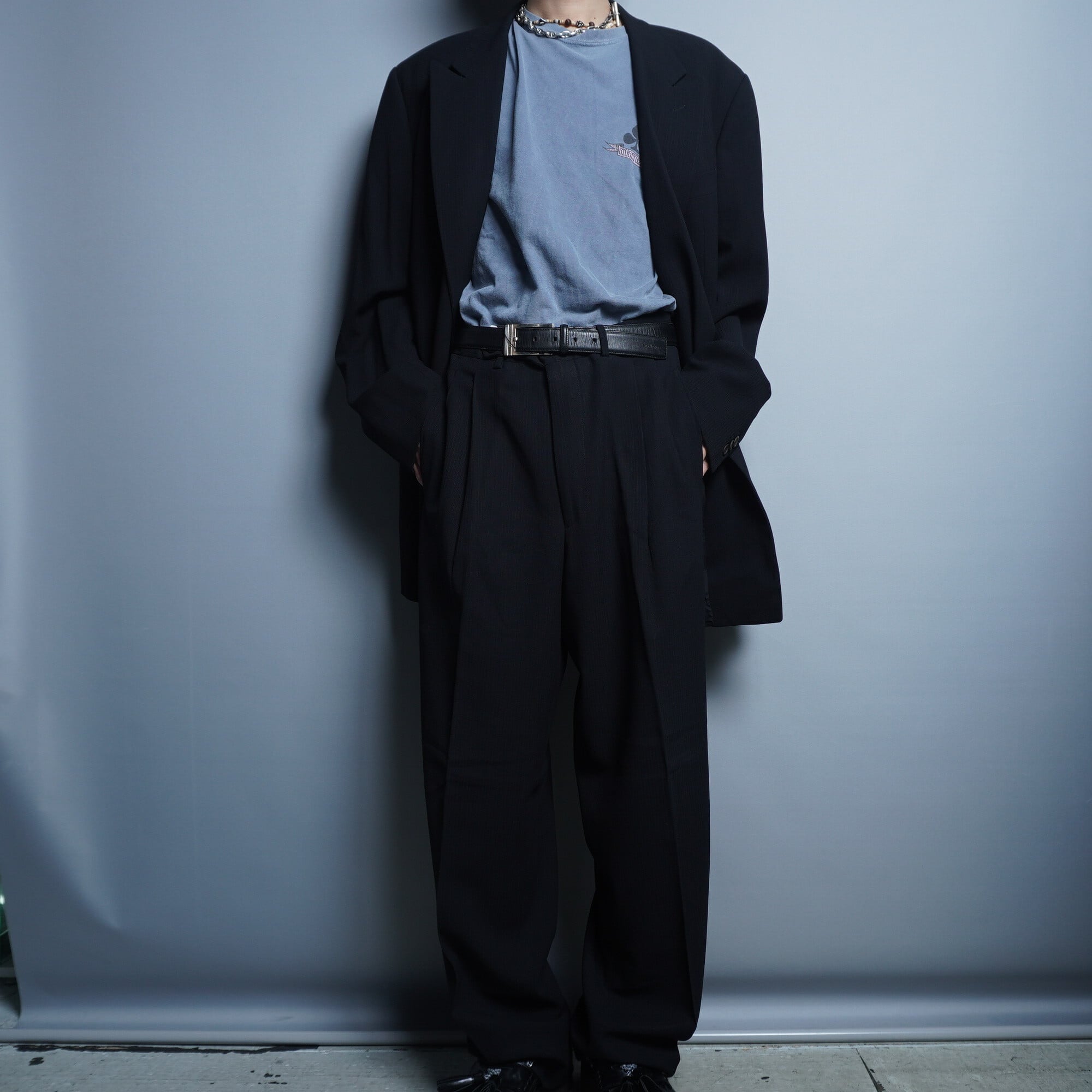 アルマーニのダブルウールセットアップ。ジャガード織りでデザインされたストライプが、厚みが出ていて、立体的になっているのが特徴です。ジャガード生地特有の立体感が高級感を引き出しています。