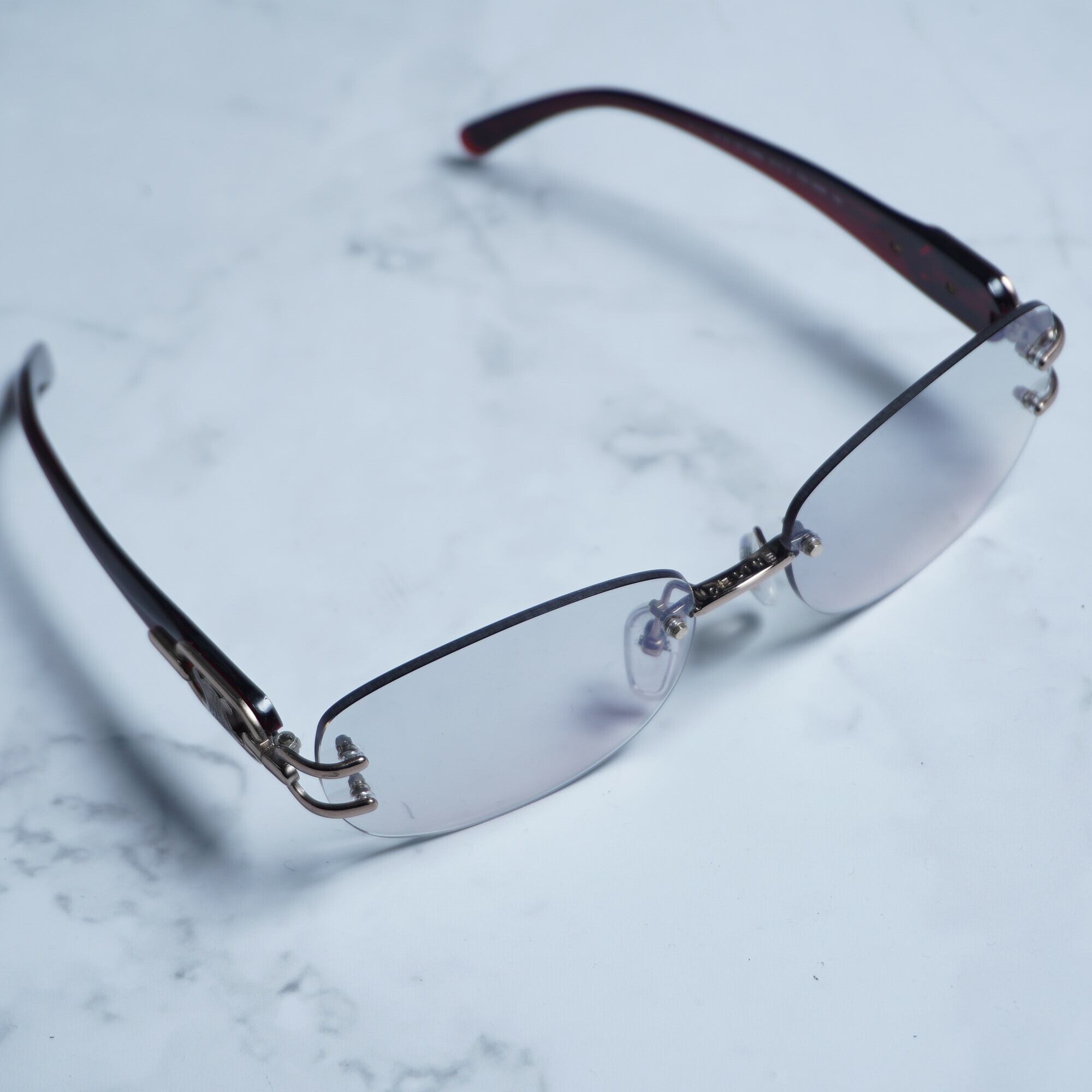 CELINEの代表的なデザインであるマカダムロゴがテンプルに施された一本。流行りのリムレス型で今の時代にもマッチする最適なアイテム。