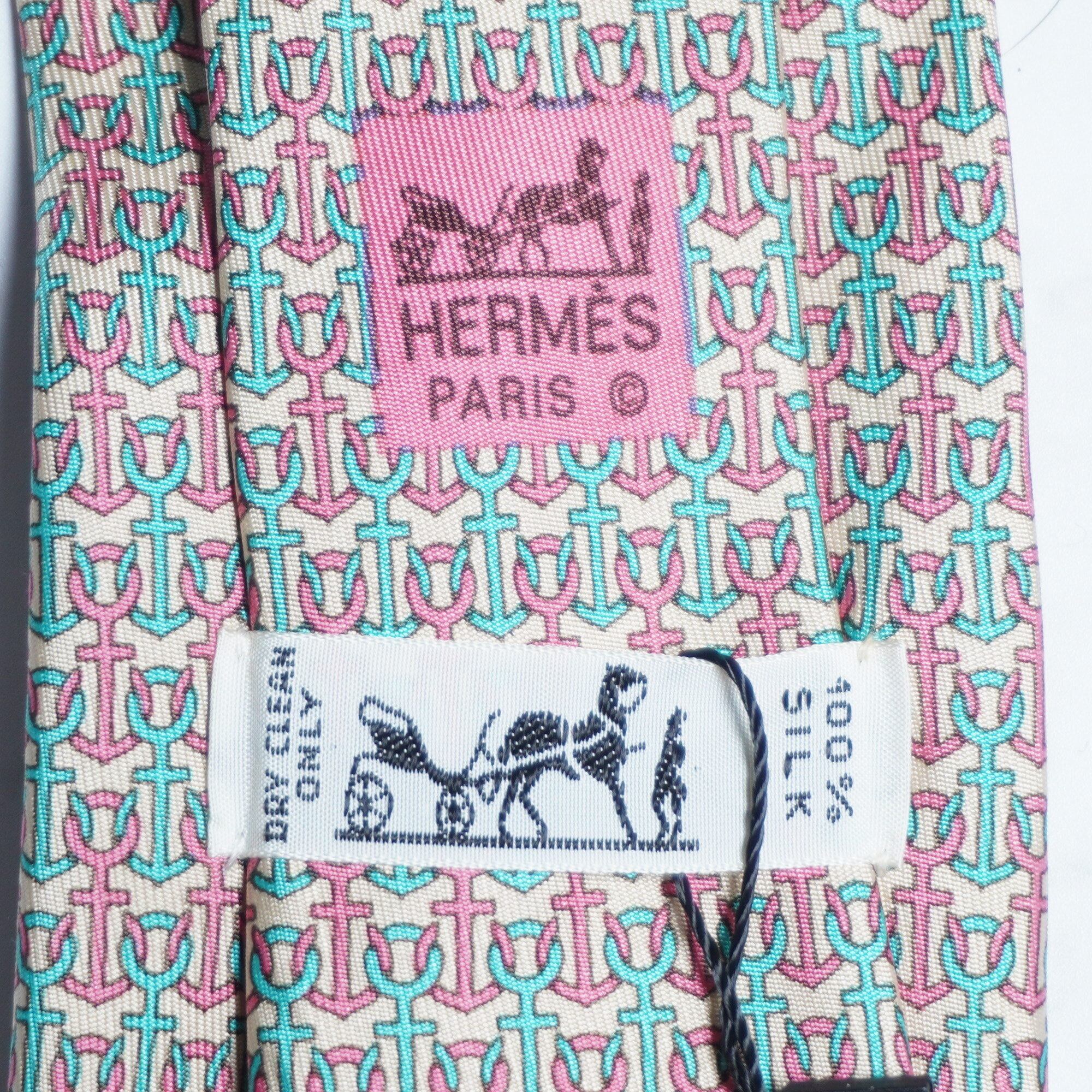 HERMESのパターンデザインネクタイ。ピンクとブルーのイカリが交互にデザインされている遊び心のある一品となっております。