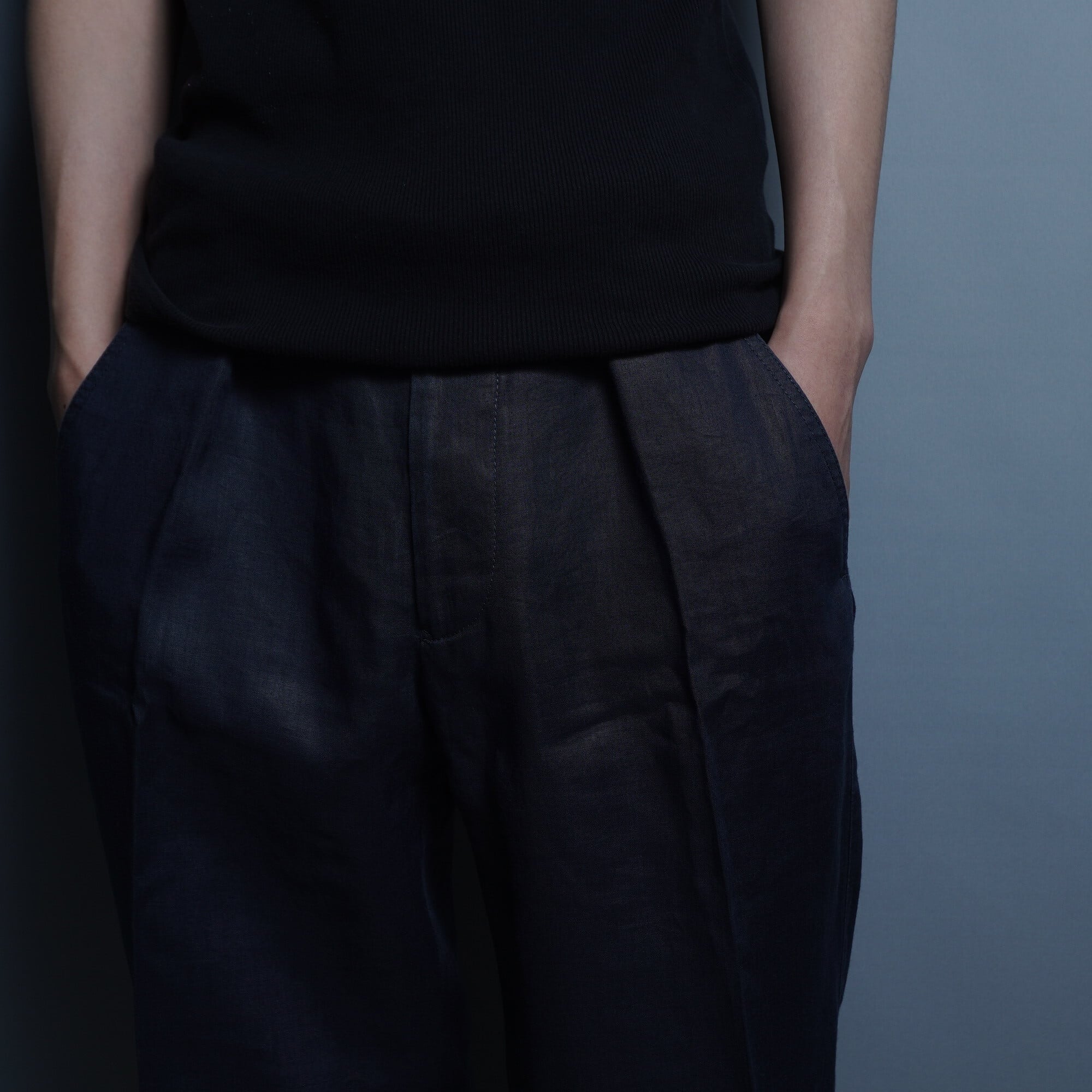 上品な光沢感が特徴です。シルク混の生地が、高級感を演出し、大人の男性の品格を際立たせます。ワイドなシルエットがリラックス感を漂わせながらも、アルマーニらしい洗練された印象を与えます。ネイビーカラーはどんなトップスとも合わせやすく、ビジネスシーンからフォーマルな場面まで幅広く活躍するアイテムです。